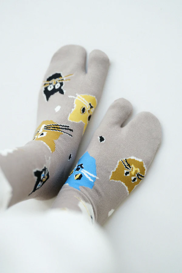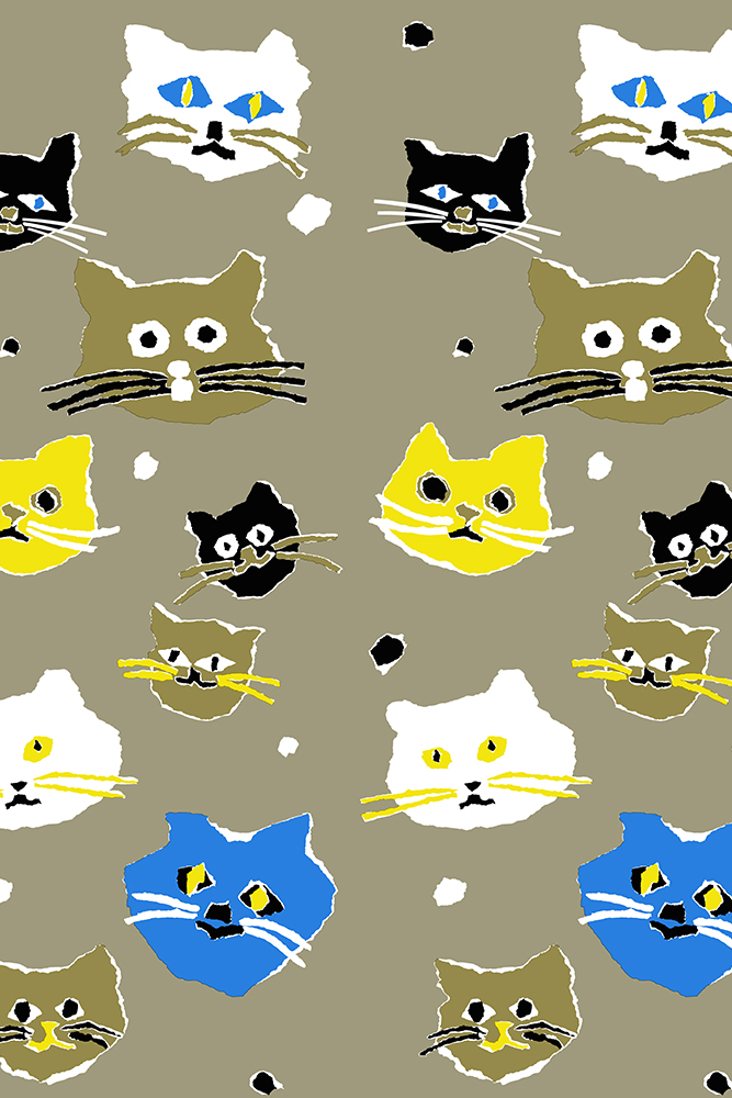 ヒゲや目でコミュニケーションを取るネコのユニークな表情がとってもかわいいテキスタイルです。