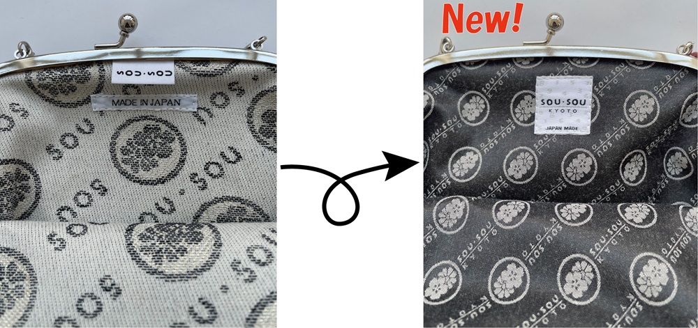 以前のものから見た目が大きく変わり、がま口を開いたときの印象がより華やかに。