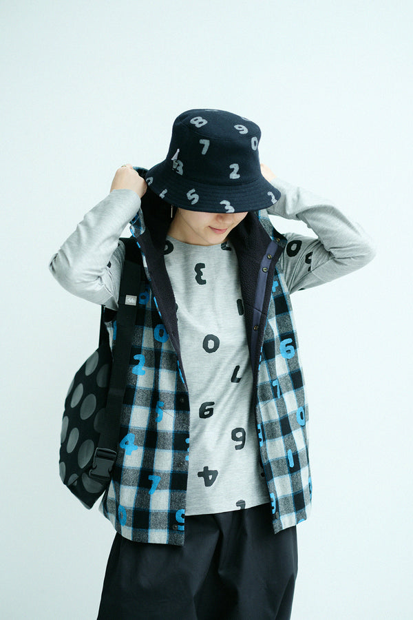 ■ウールチェック×ボア BIKEフードベスト/SO-SU-U ブルーブラック
