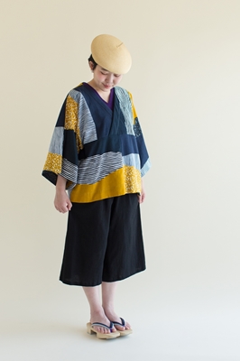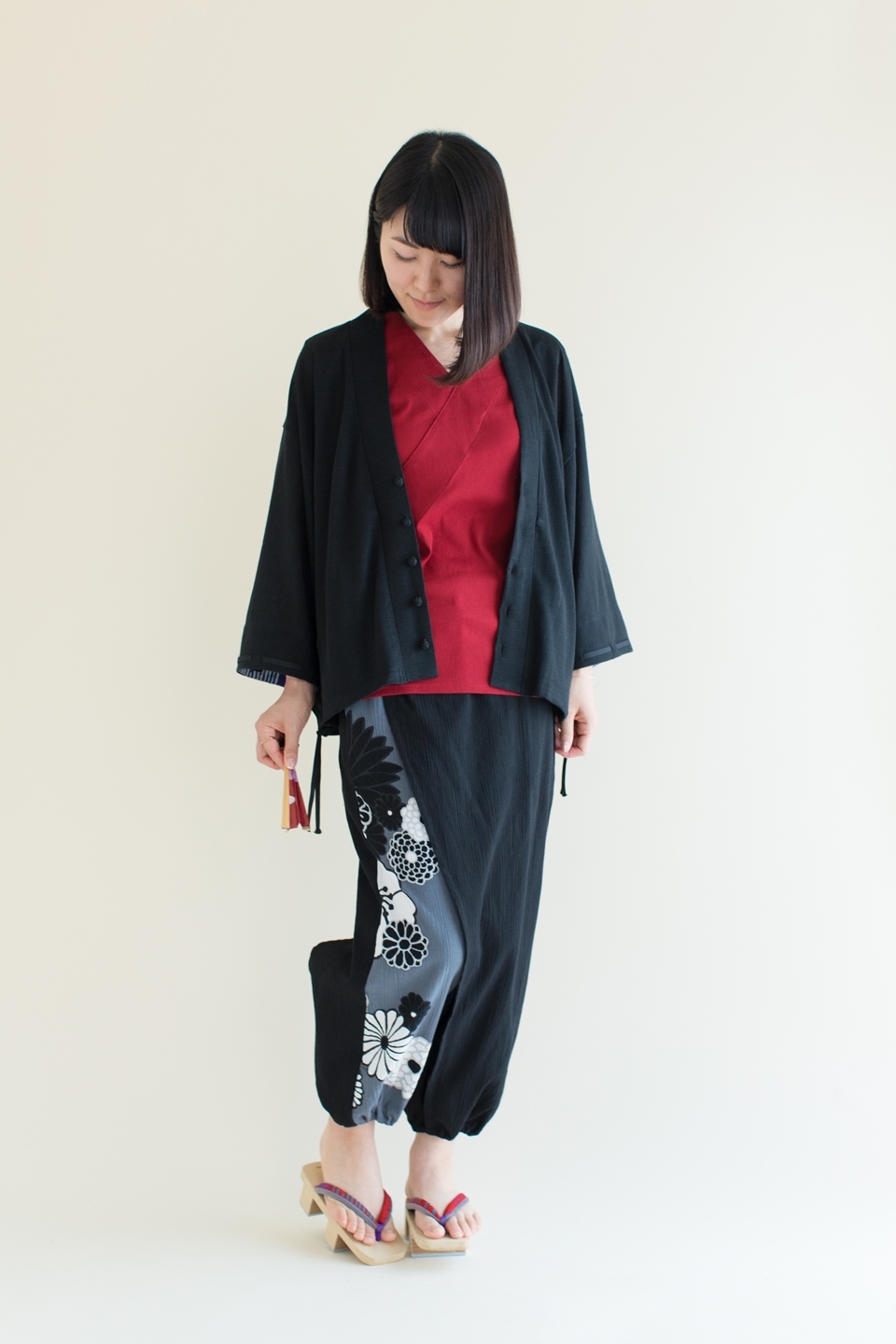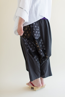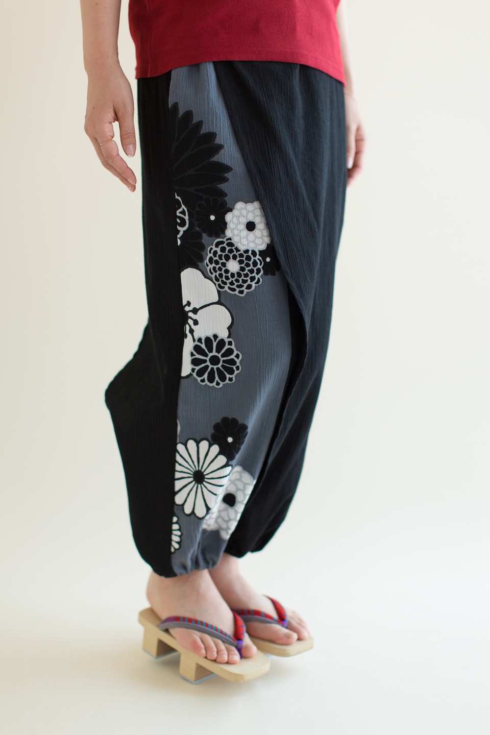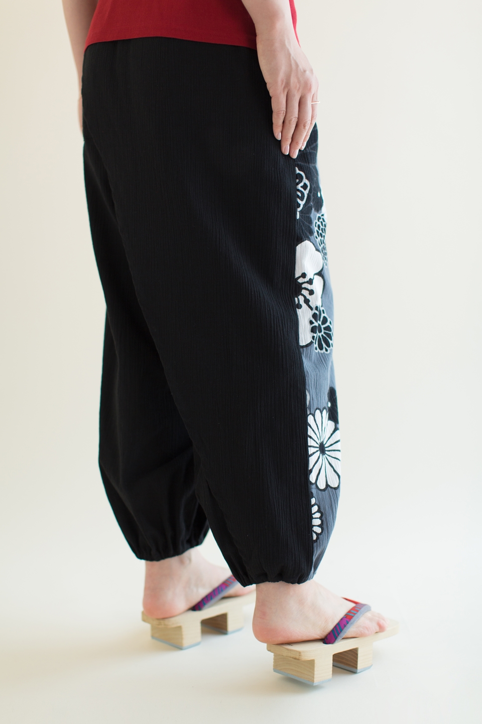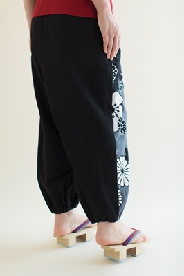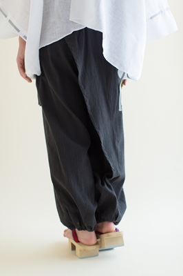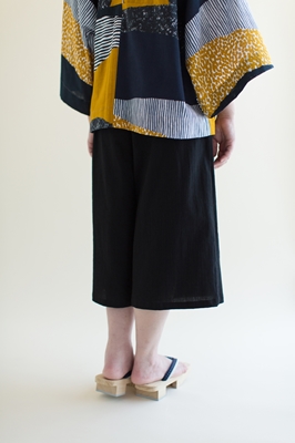高島縮 広形もんぺ はぎ丈/濡羽色