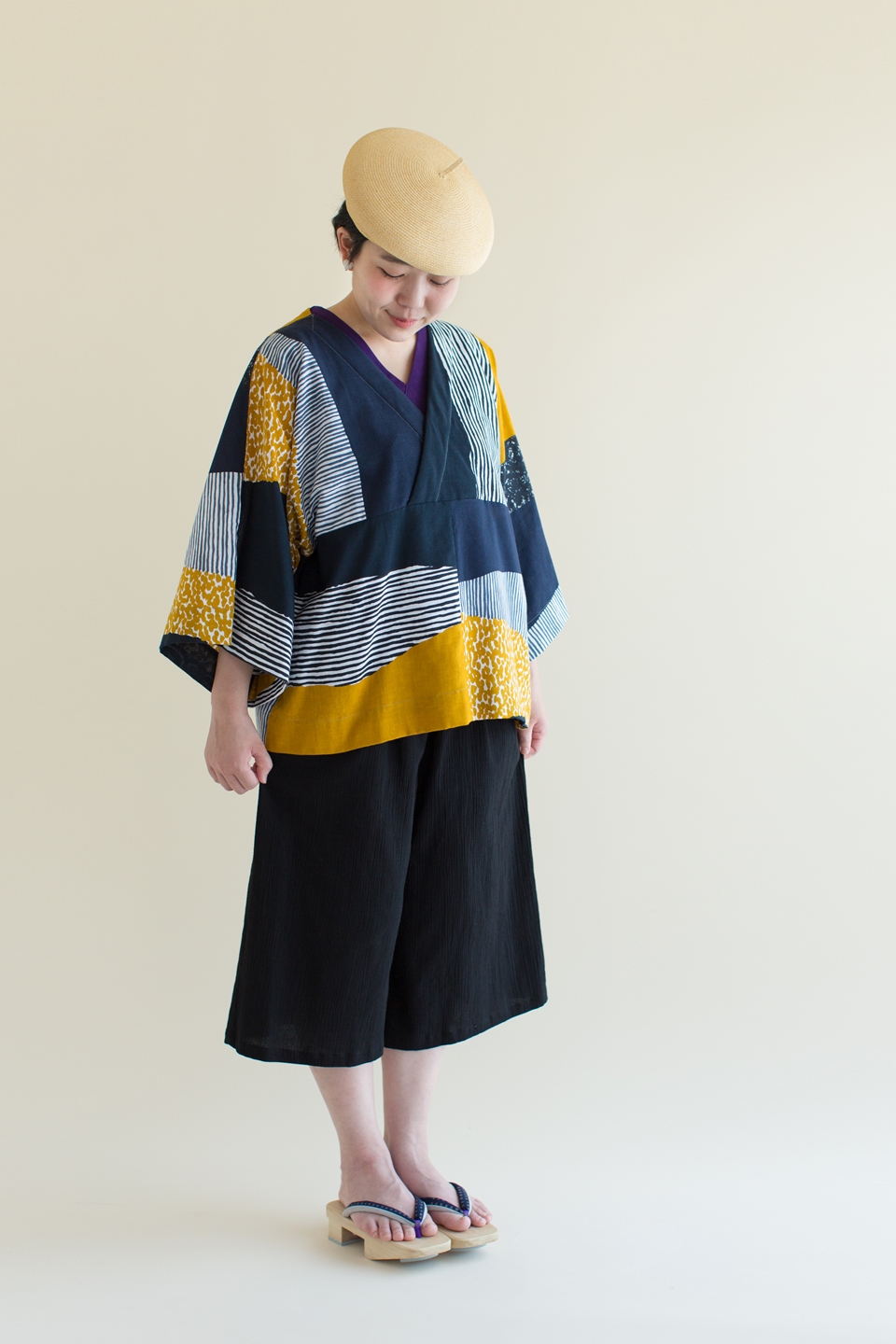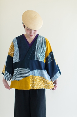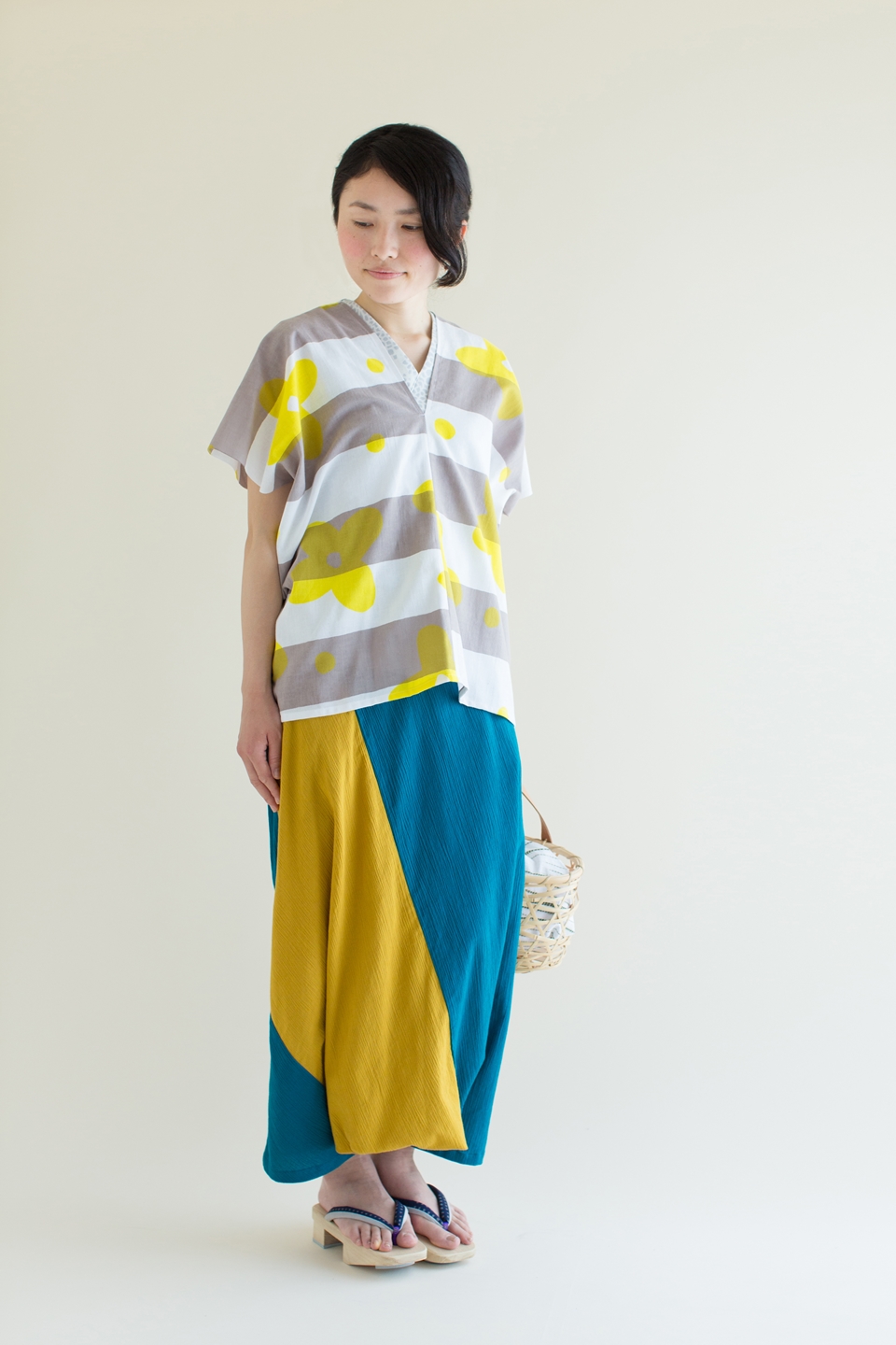 高島縮 長方形衣 組 裾文様/木賊色×ひなたぼっこ