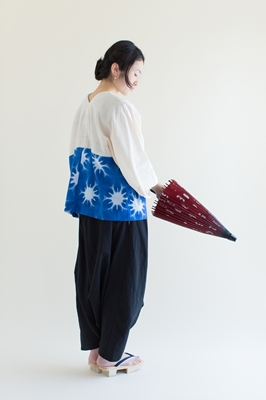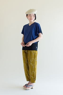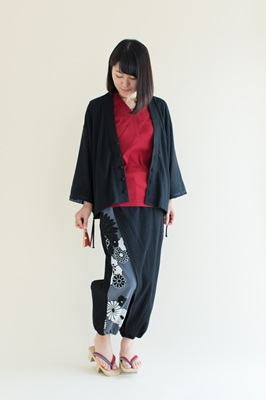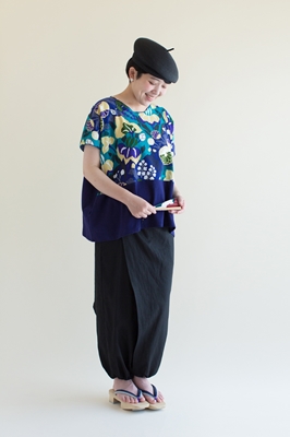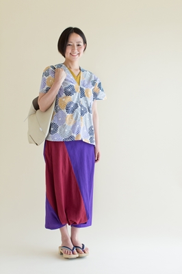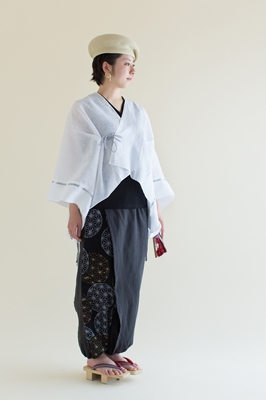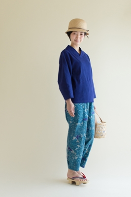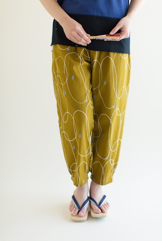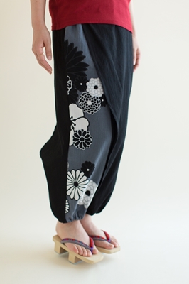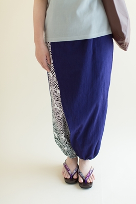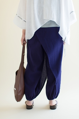 タック(襞)で裾をすぼめたデザインのもんぺです。