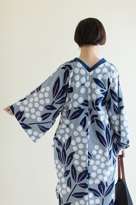 高島縮 手柄寛衣下 片身替わり/濃灰×麻てまり