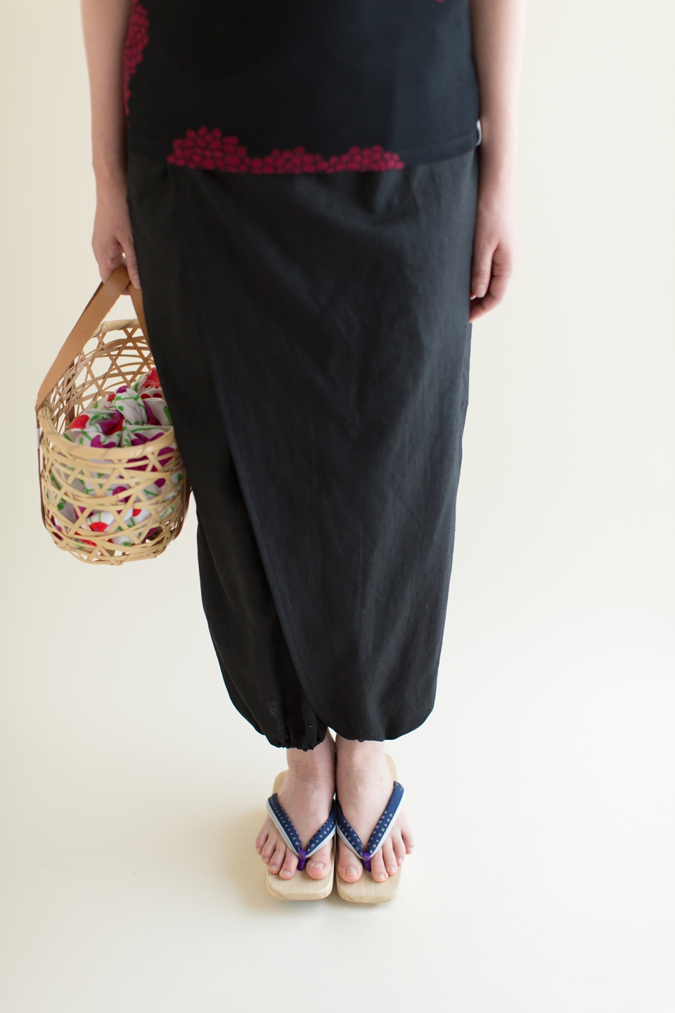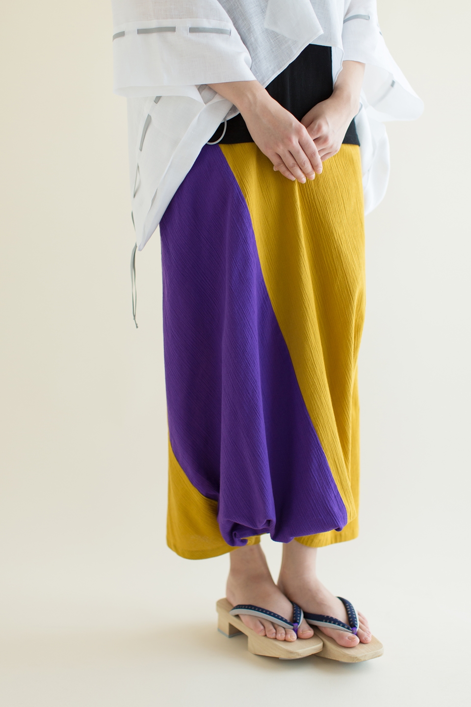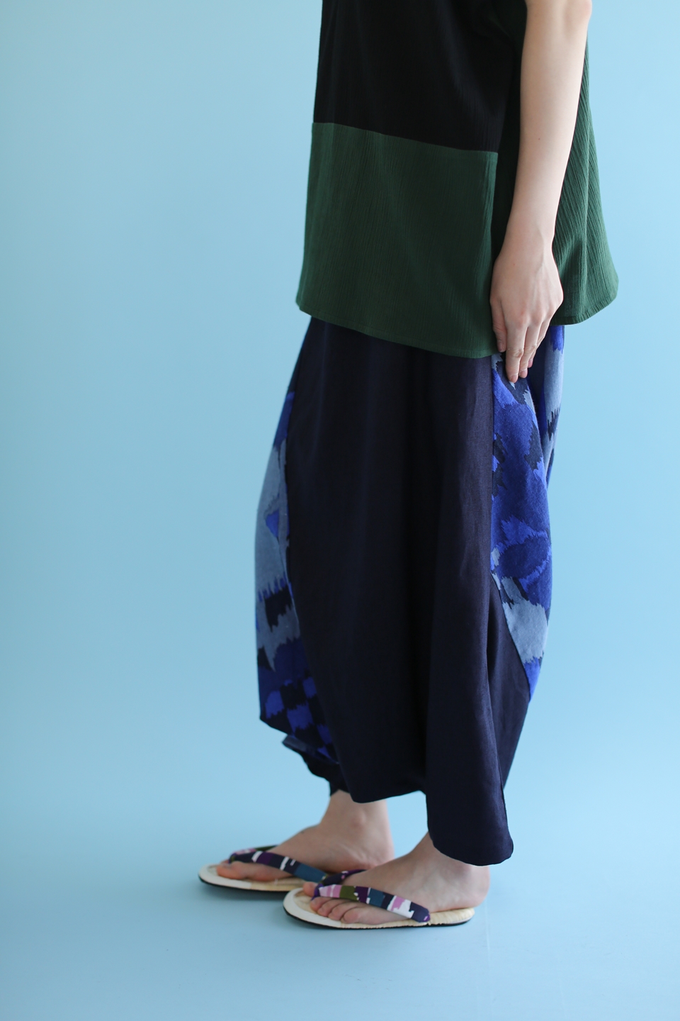 高島縮 襞(ひだ)もんぺ/濡羽色(ぬればいろ)