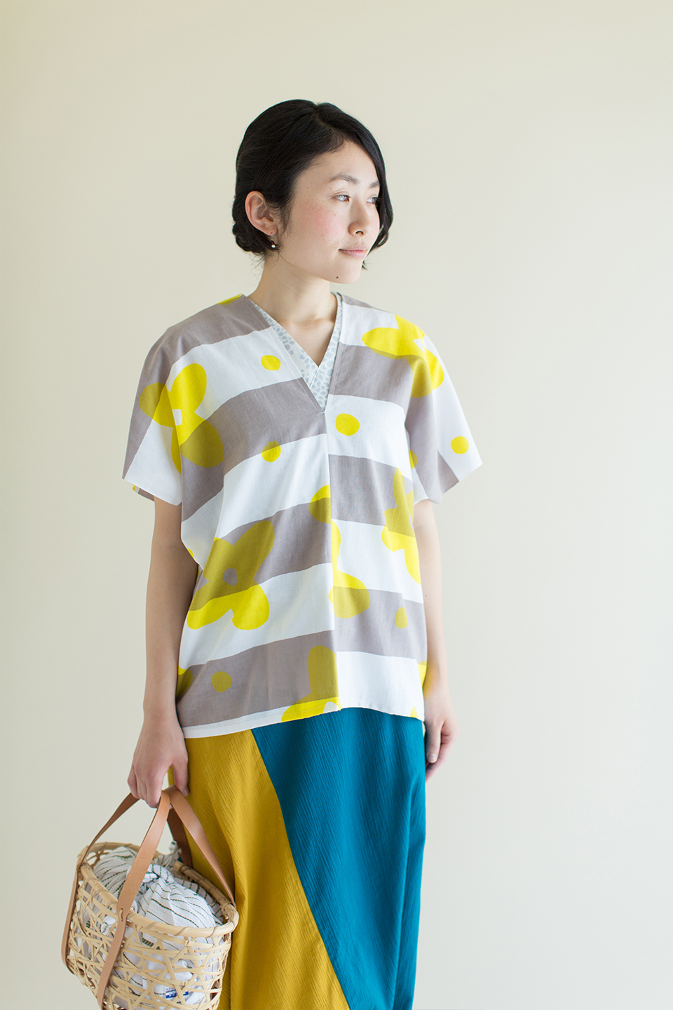 知多木綿 特文 四角衣(とくぶん しかくい)/花風 檸檬色(はなかぜ れもんいろ)