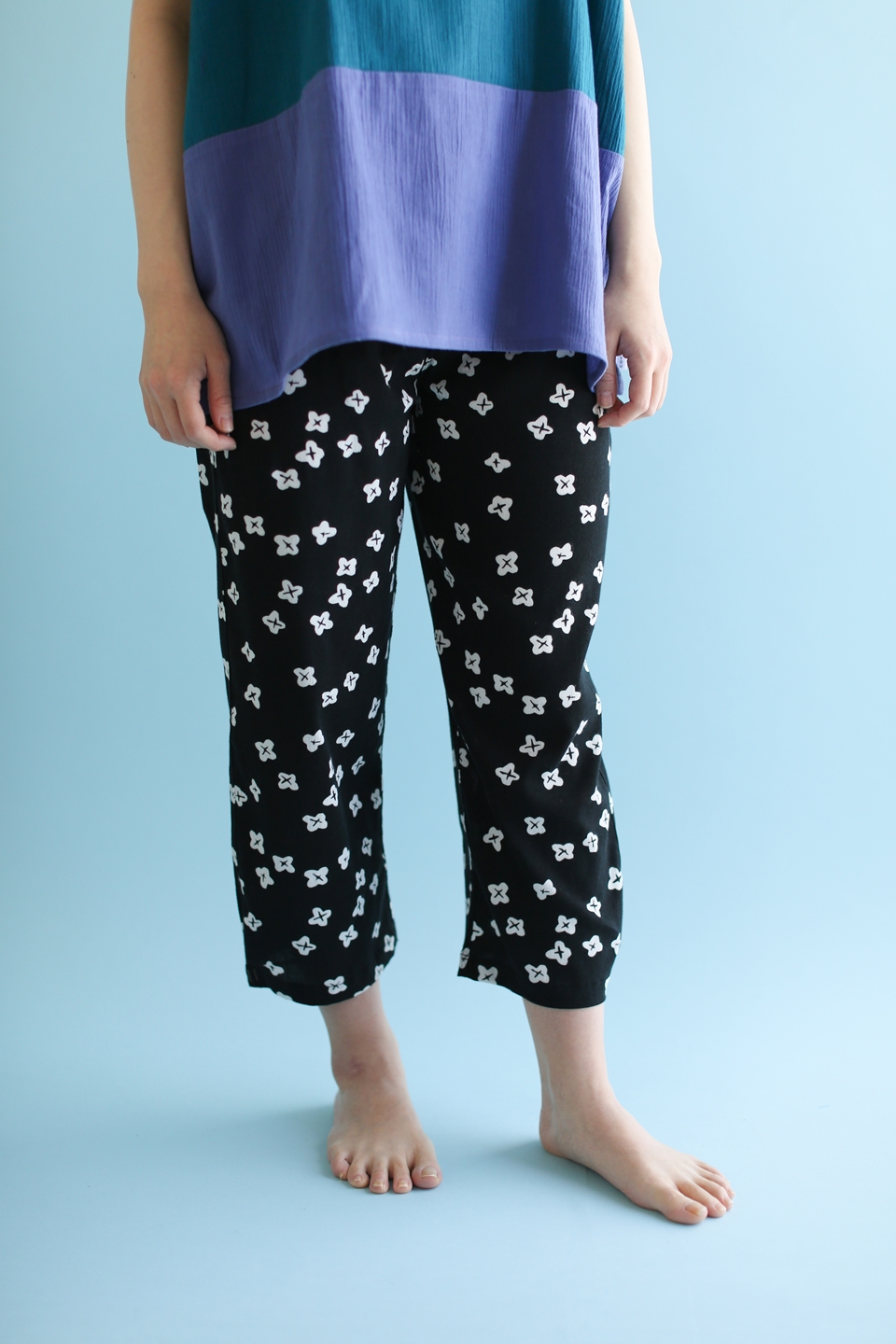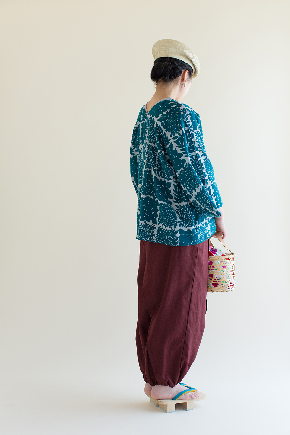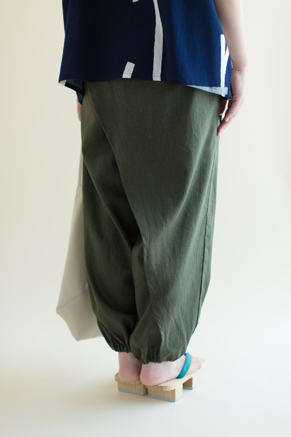 タック(襞)で裾をすぼめたデザインのもんぺです。
