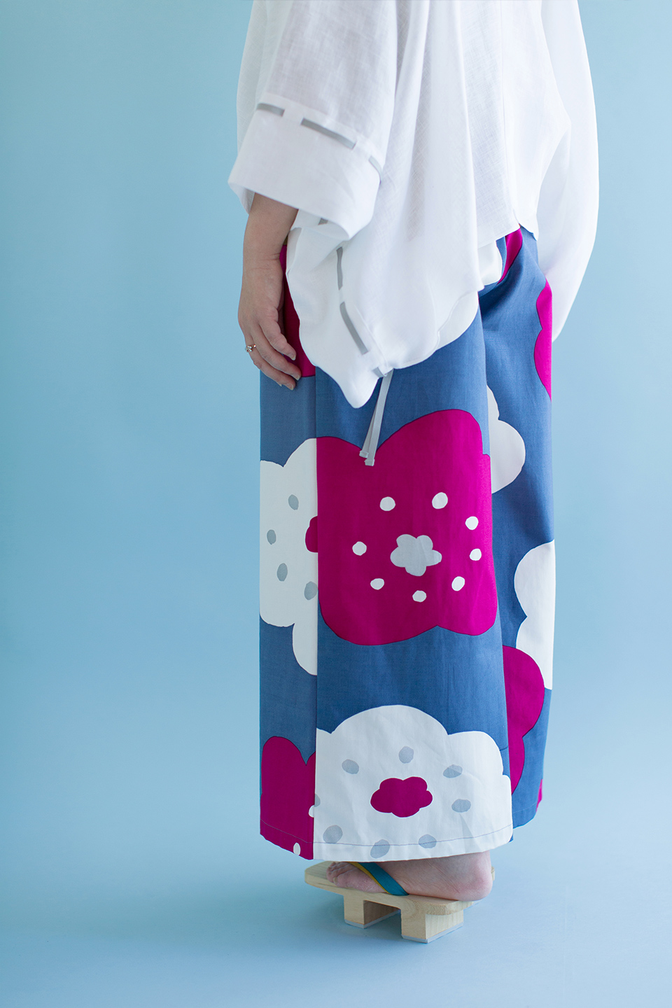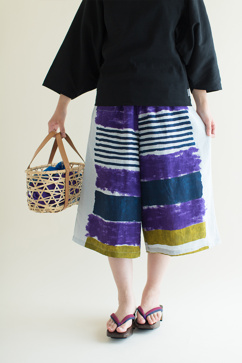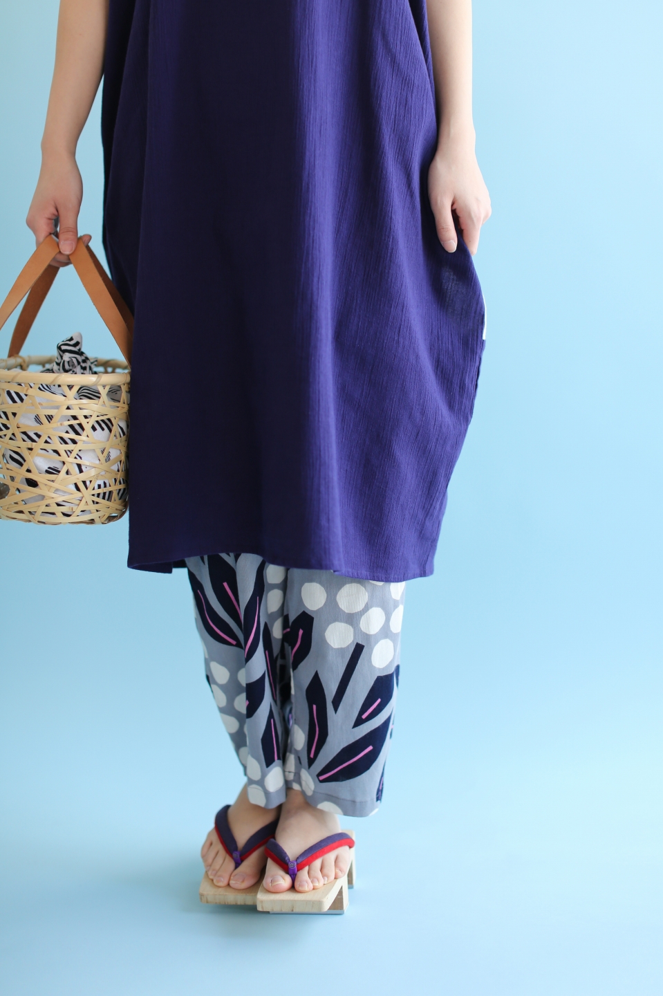 高島縮 襞(ひだ)もんぺ/菖蒲色(しょうぶいろ)