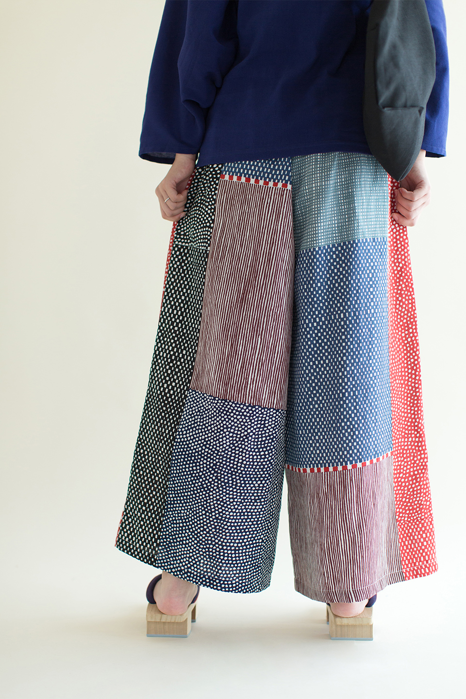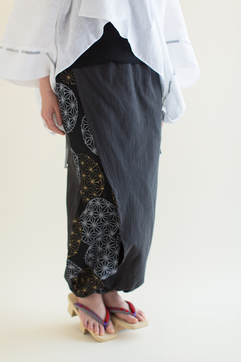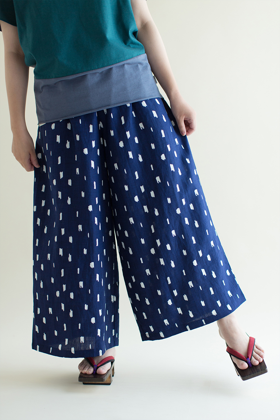 高島縮エンボス生地を使用した、動きやすく、楽で快適な穿き心地です。