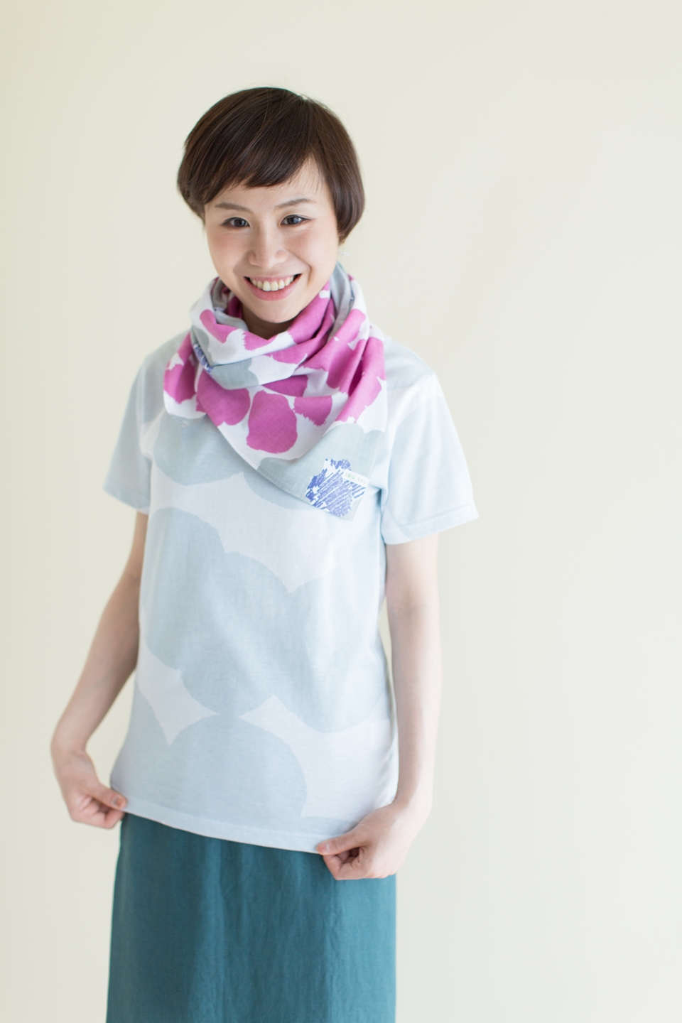 肌触りがよい三重県の伝統工芸品、伊勢木綿の手ぬぐいで作った“くびまき”です。