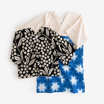 涼しげな青の濃淡に、キリッとしたテキスタイルデザイン、絞り染めのグラデーション。「着衣 夏の装い」は、素材や着心地の快適さはもちろん、見た目の涼感にもこだわりました。