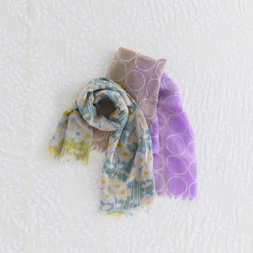 プリントものはもちろん、絞り染めも春めく色合わせがたくさん揃っています。