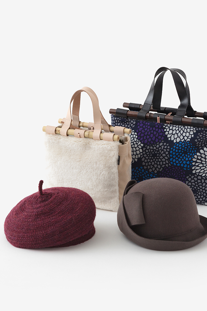 SOU・SOU流和装にしっくり合う、個性的な帽子やカバン。