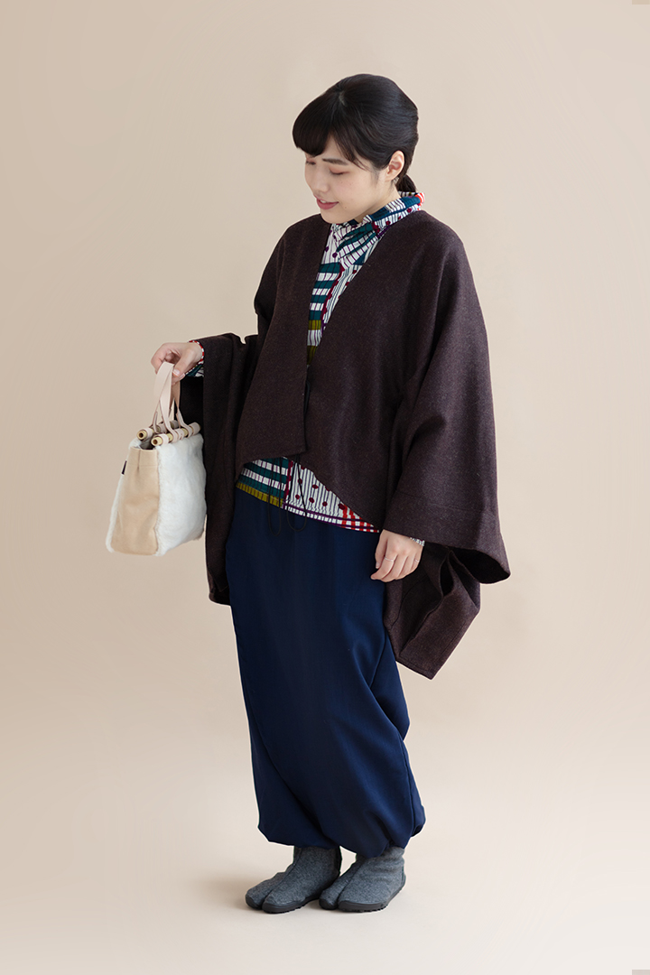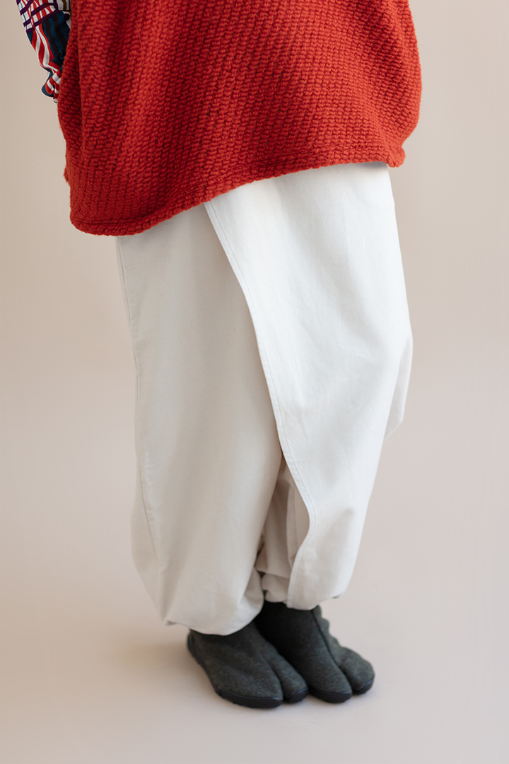 剣の柄(たかみ)を持つ人をイメージしたゆったりとした衣です。