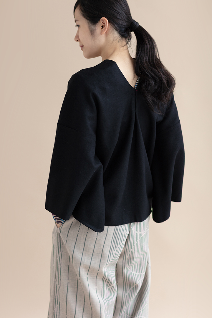 弥生時代に生まれた「貫頭衣」をモチーフにしたデザインに小袖をつけました。
