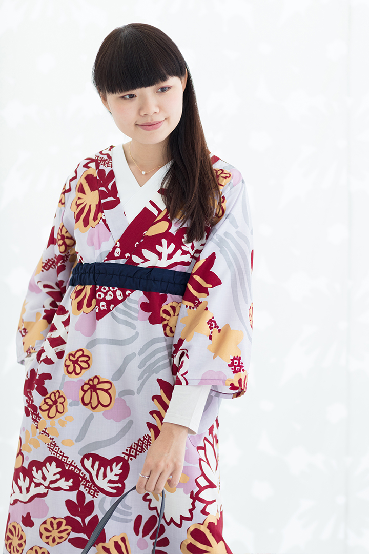 着物に見立てた衣(ころも)という意味で名づけました。表地は静岡県浜松市で織られたモスリン生地を使用。