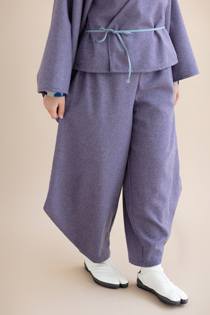 名の通り広い形をしたもんぺ。裾部分の角の折り返しが特徴です。