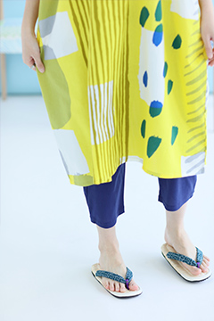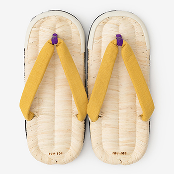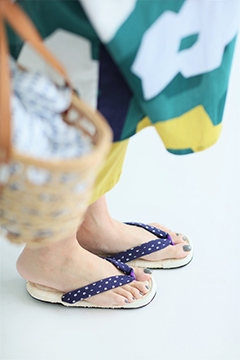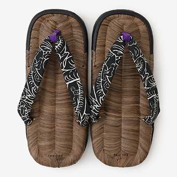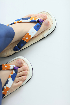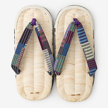 鼻緒にオリジナルテキスタイルを使用した草履。草履の一大産地 奈良県御所市で生産。