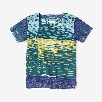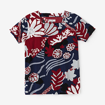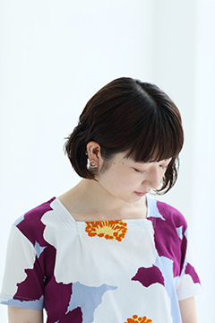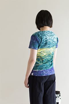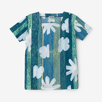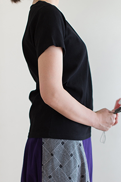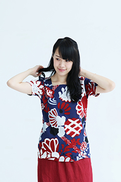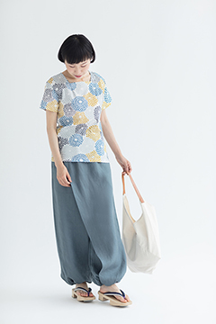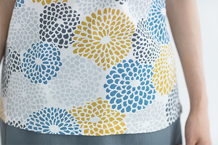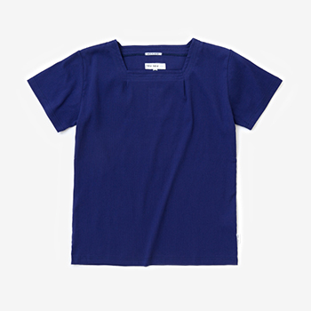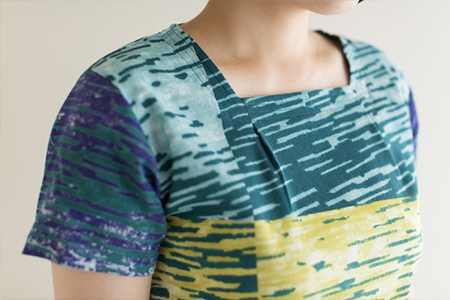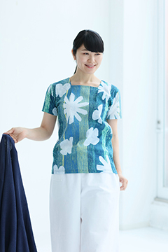 ストレッチ性のある高島縮を使用した上衣。スクエアネックが上品な印象です。