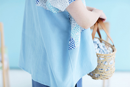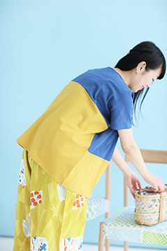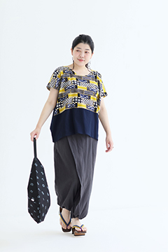 体感温度マイナス二度の高島縮を使用。弥生時代に生まれた貫頭衣を元にデザイン。