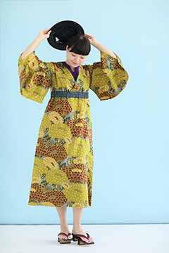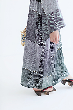 浴衣に見立てた衣(ころも)という意味で名づけました。一枚で華やぐワンピースです。