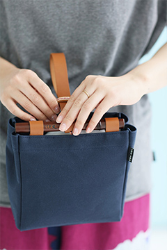 本体は富士金梅・八号帆布、持ち手には竹又謹製の竹と本革を使用