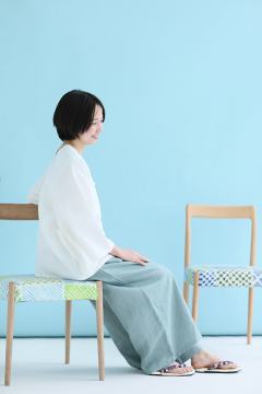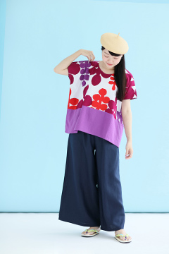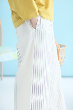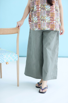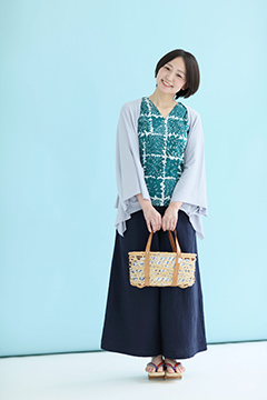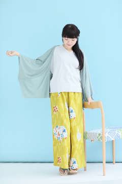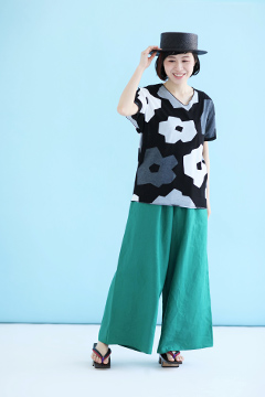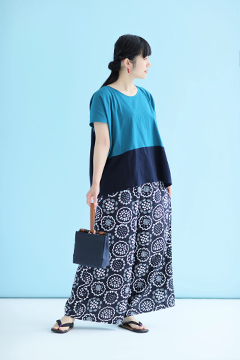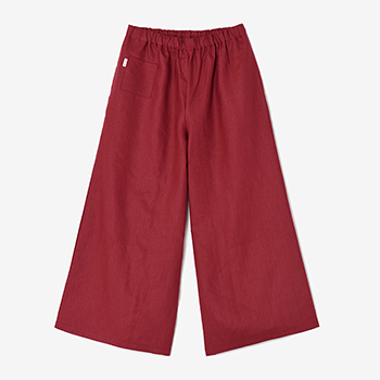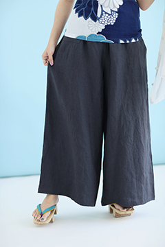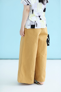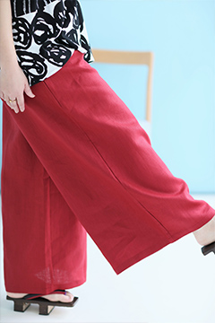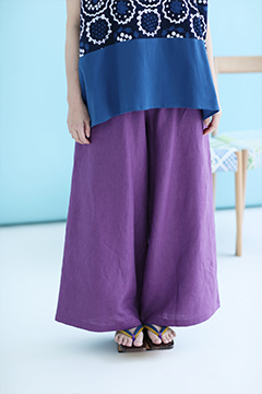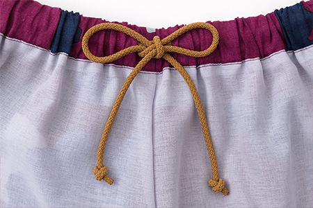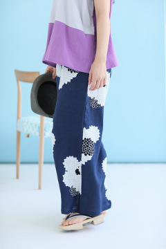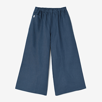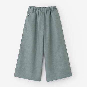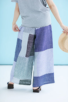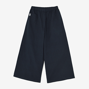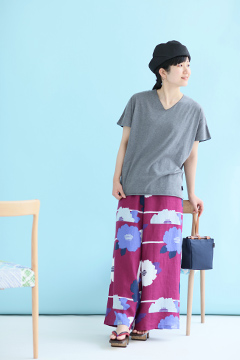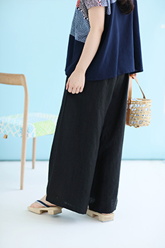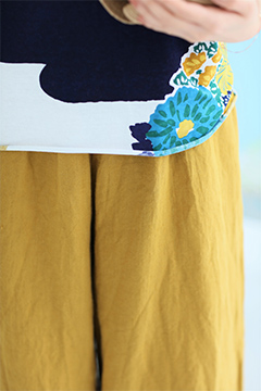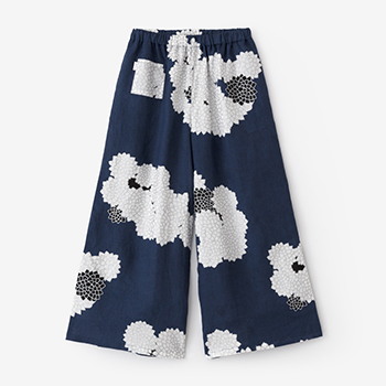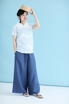 名のとおり、広い形のもんぺ。前身頃右上の小さなポケットがポイント。