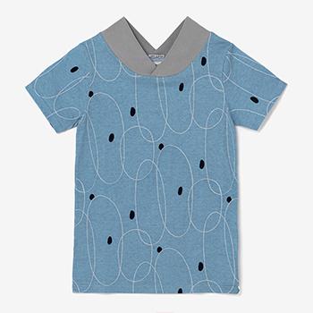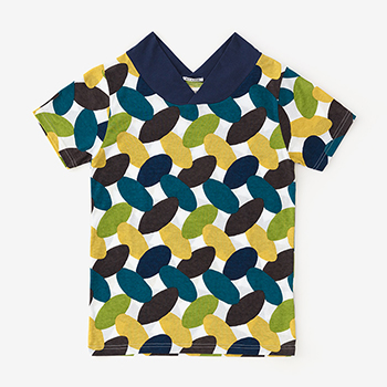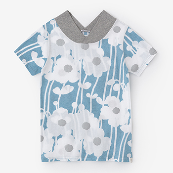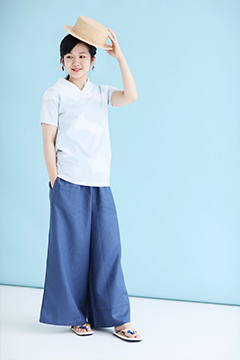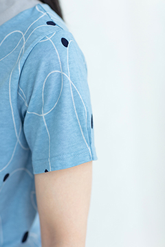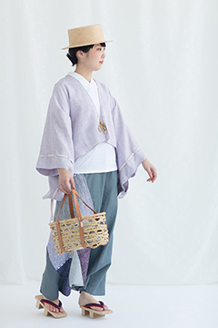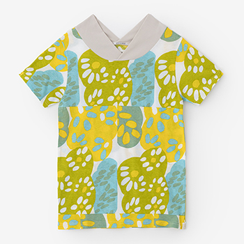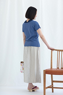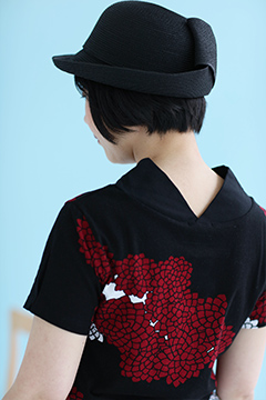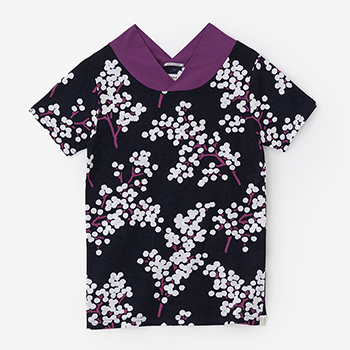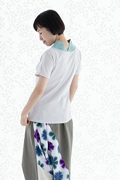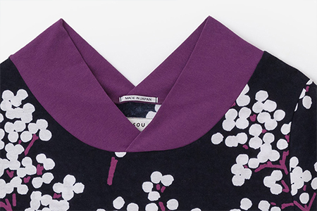 衿のデザインが特徴的なジバン。着心地の良い綿天竺に京型友禅で染色。