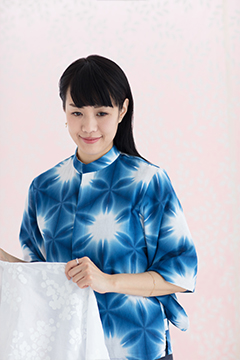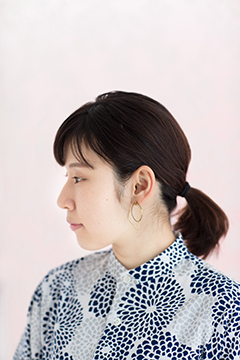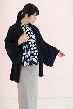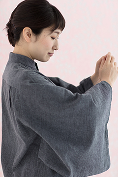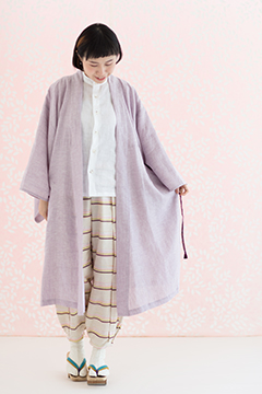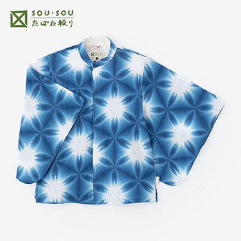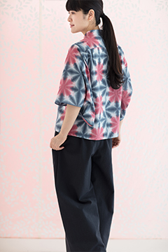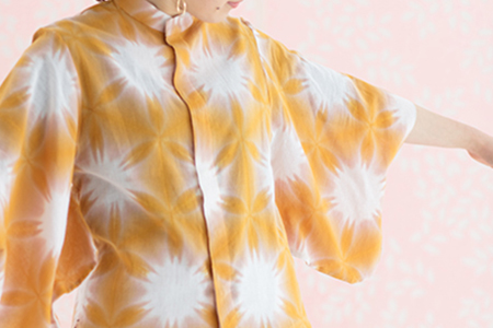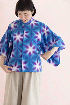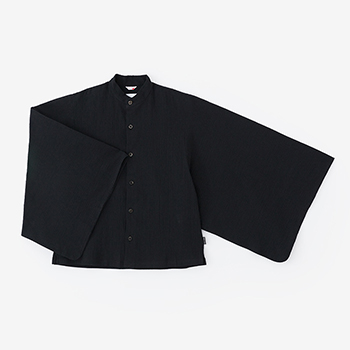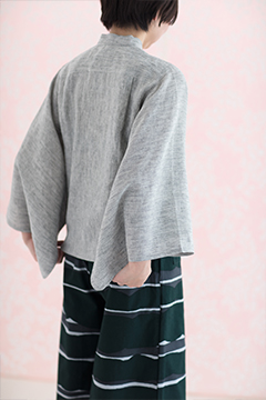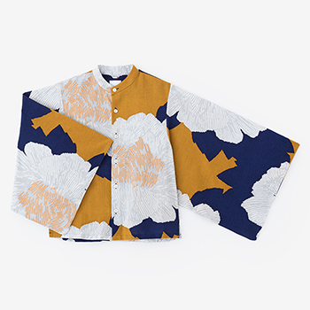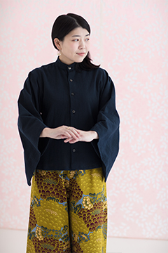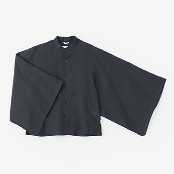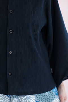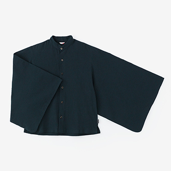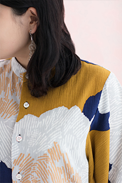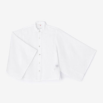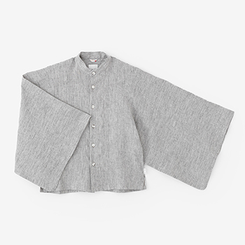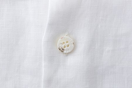 小袖がポイントのシャツ。天然の貝ボタンを使用。