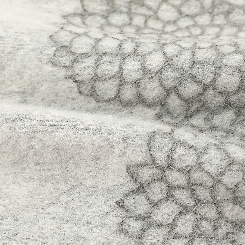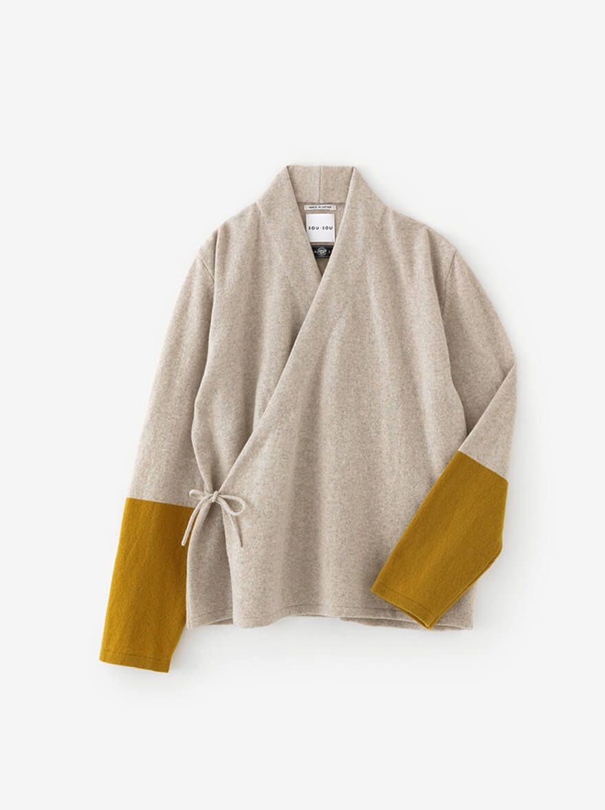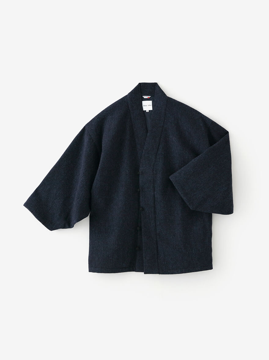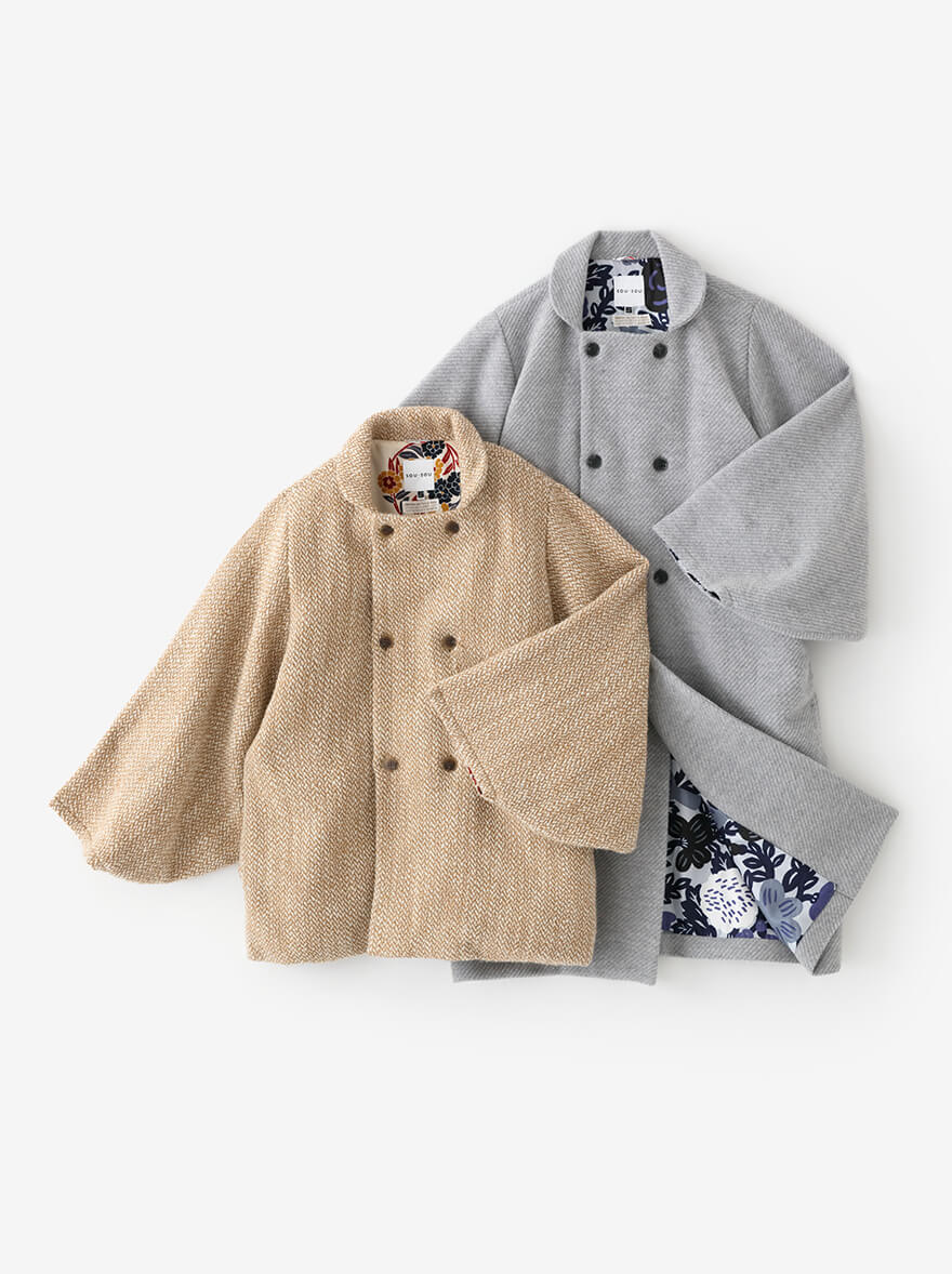 SOU・SOU冬の定番素材『羅紗』。紡毛糸を密に織って起毛させた厚手の生地で、着ると体を毛布のようにつつみこんでくれます。ご自宅でのお洗濯も可能で、洗濯による生地の劣化も少ないため、長い間やわらかな風合いをお楽しみいただけます。