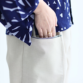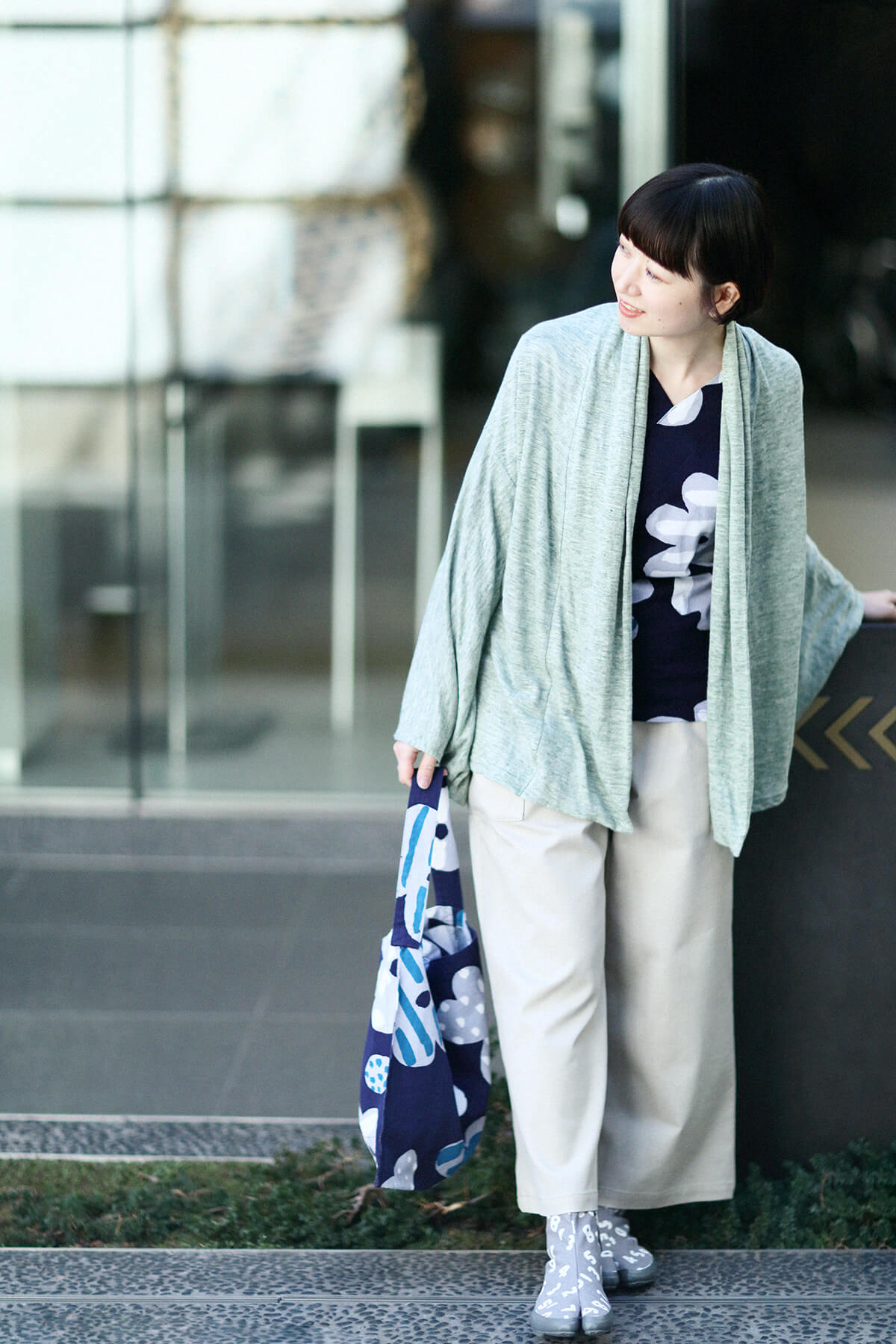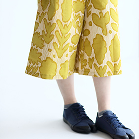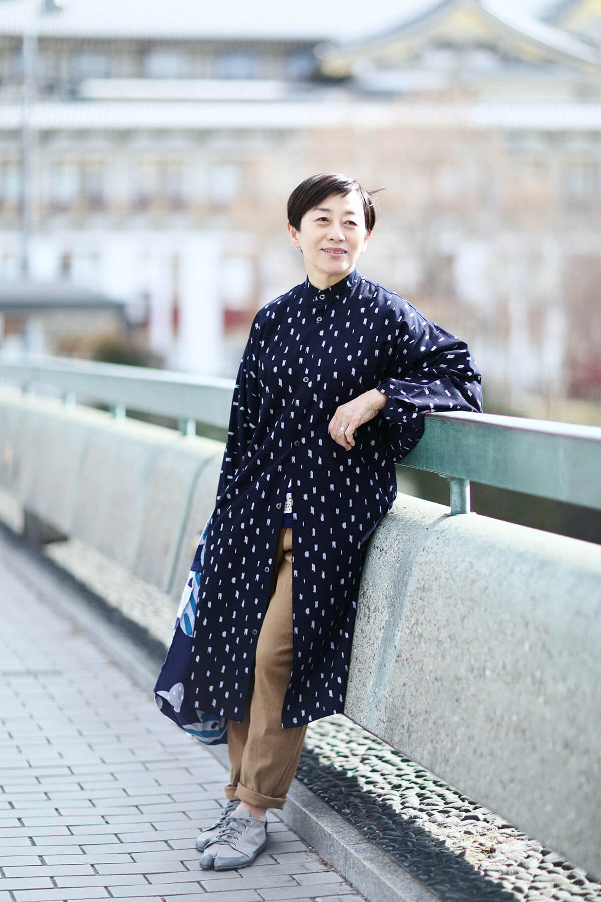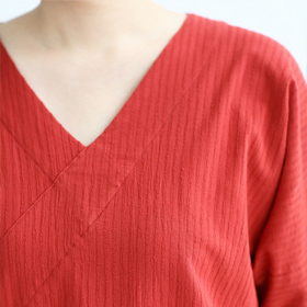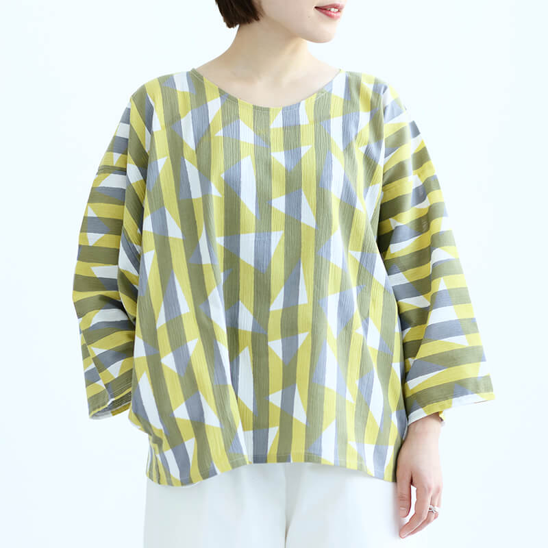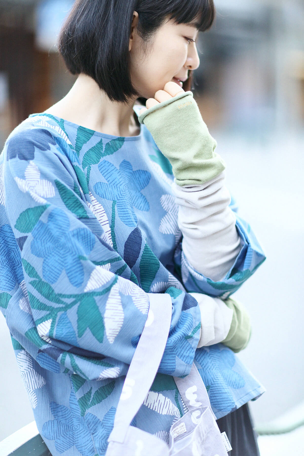 SOU・SOUでは、凹凸の型押し加工で布帛生地をニットのようにする「エンボス」と、緯糸に強撚糸を使用した生地を洗い加工することでシボを生みだす「サーキュラー」の2種類を、服の形や季節によって使い分けています。
