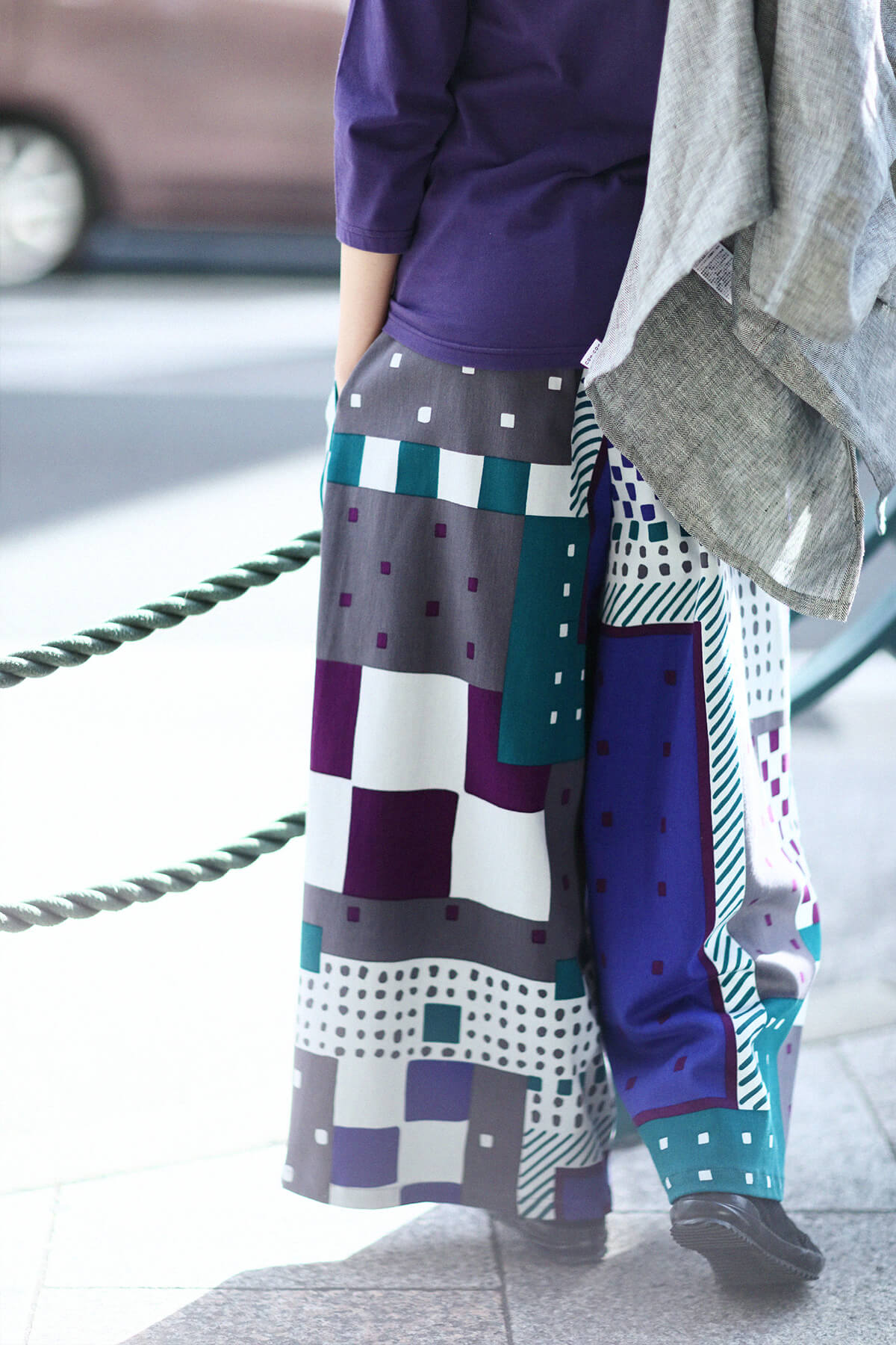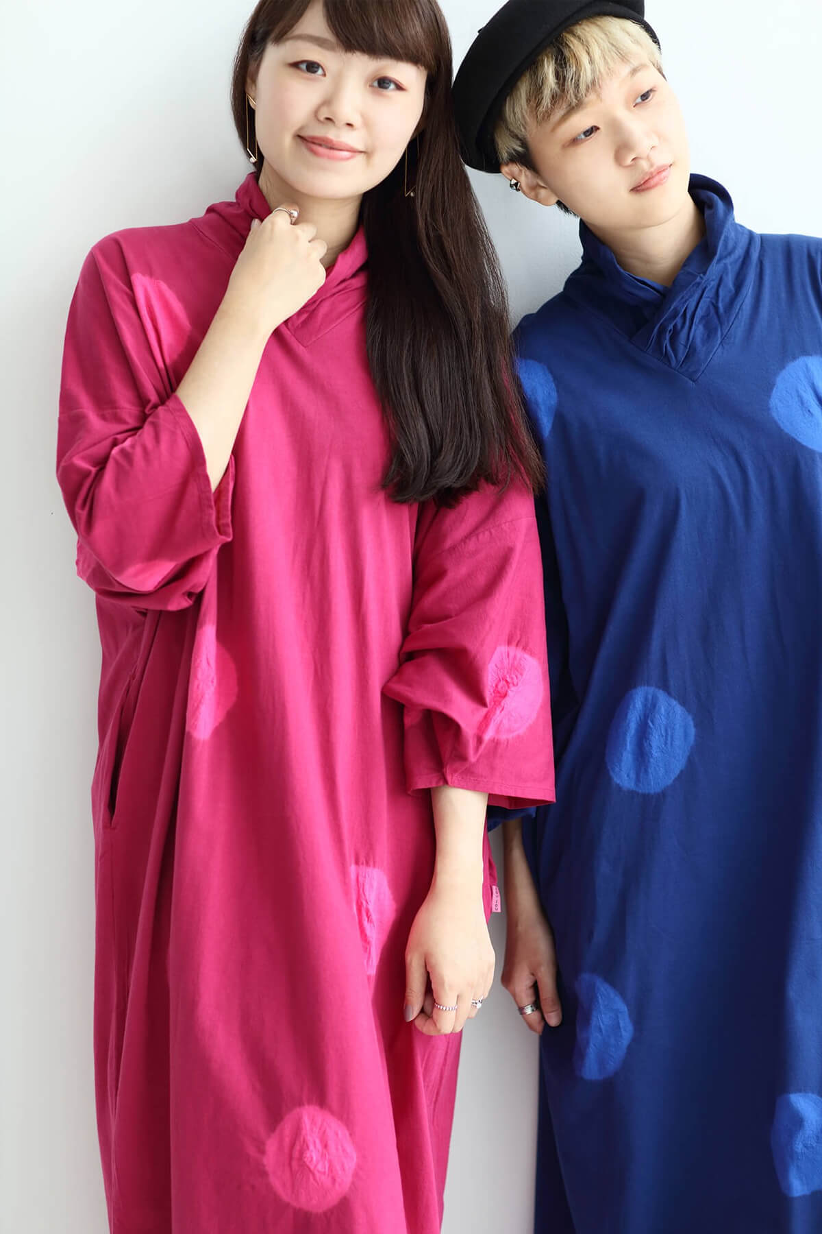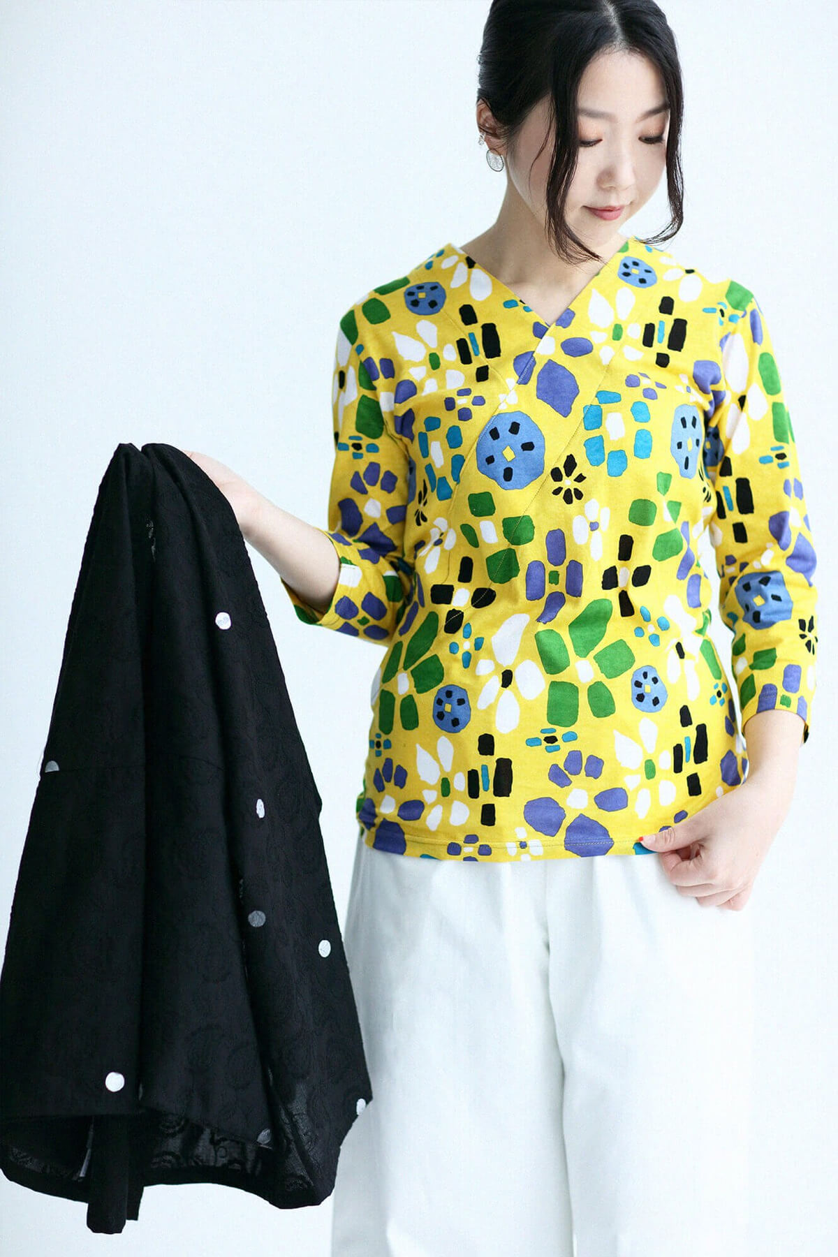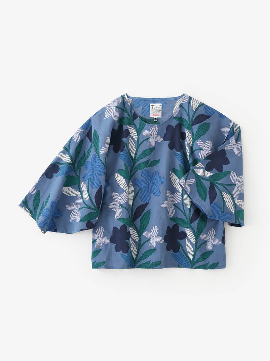 SOU・SOUでは、凹凸の型押し加工で布帛生地をニットのようにする「エンボス」と、緯糸に強撚糸を使用した生地を洗い加工することでシボを生みだす「サーキュラー」の2種類を、服の形や季節によって使い分けています。