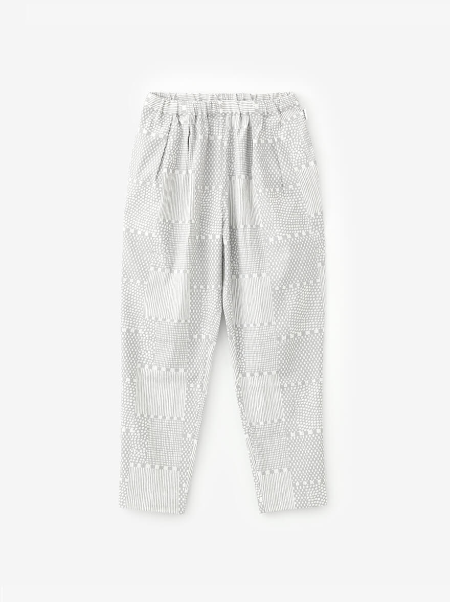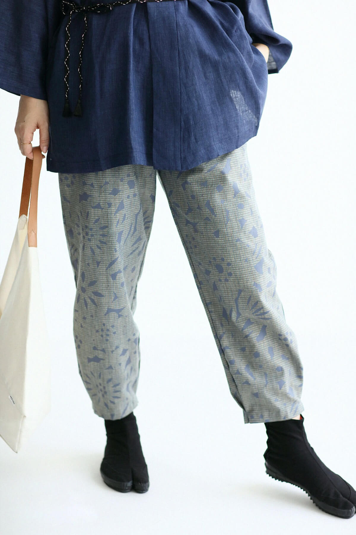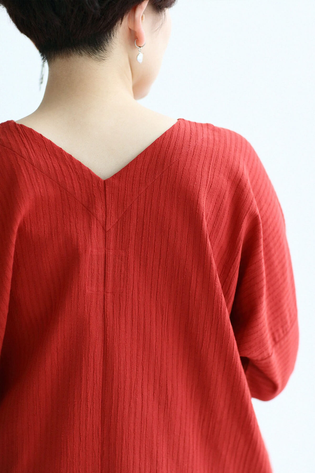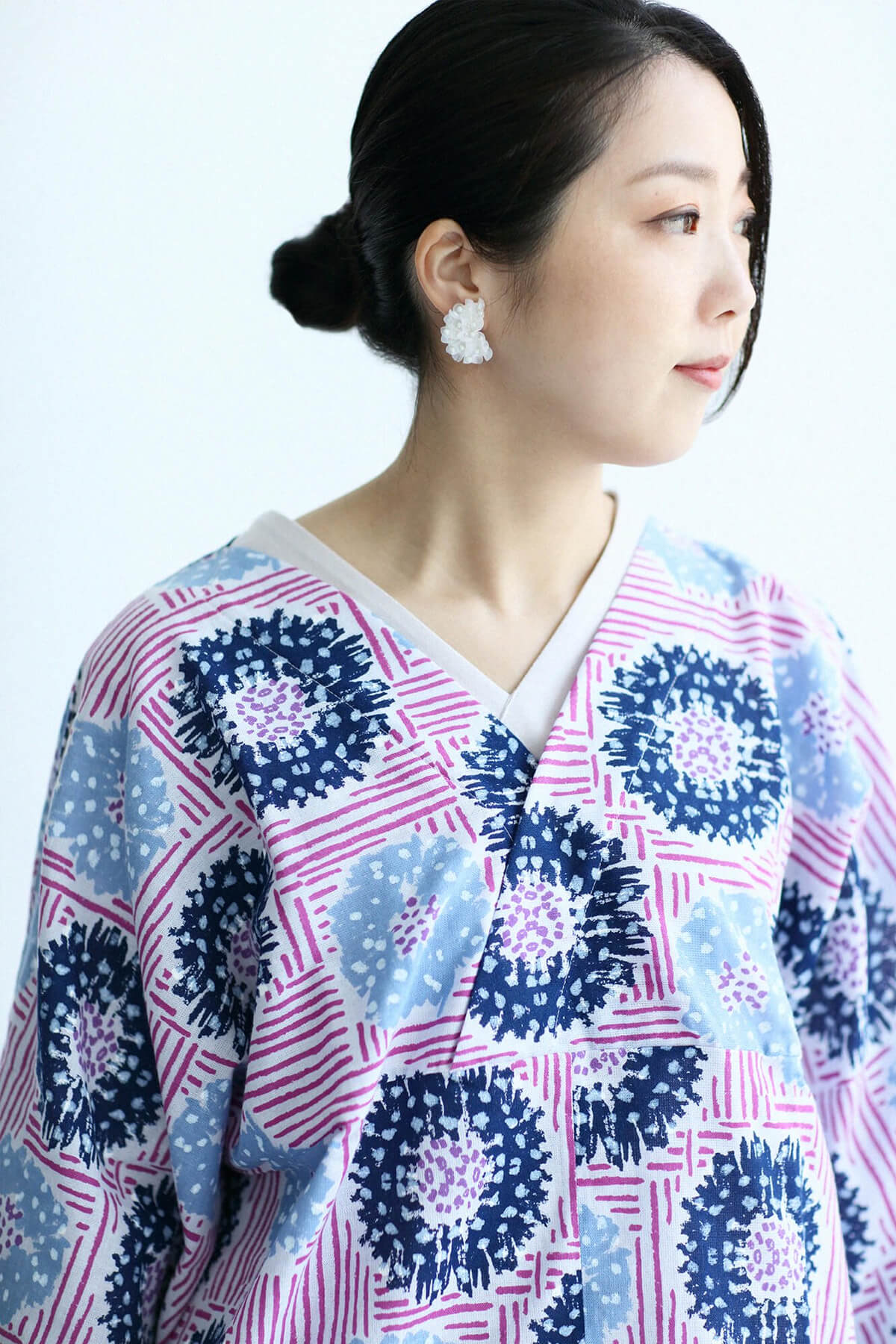 SOU・SOUでは、凹凸の型押し加工で布帛生地をニットのようにする「エンボス」と、緯糸に強撚糸を使用した生地を洗い加工することでシボを生みだす「サーキュラー」の2種類を、服の形や季節によって使い分けています。