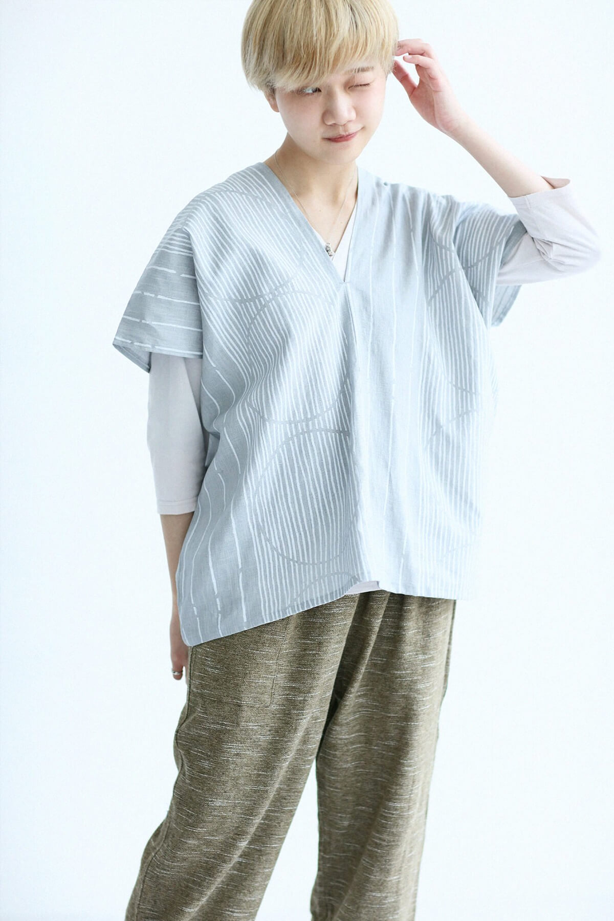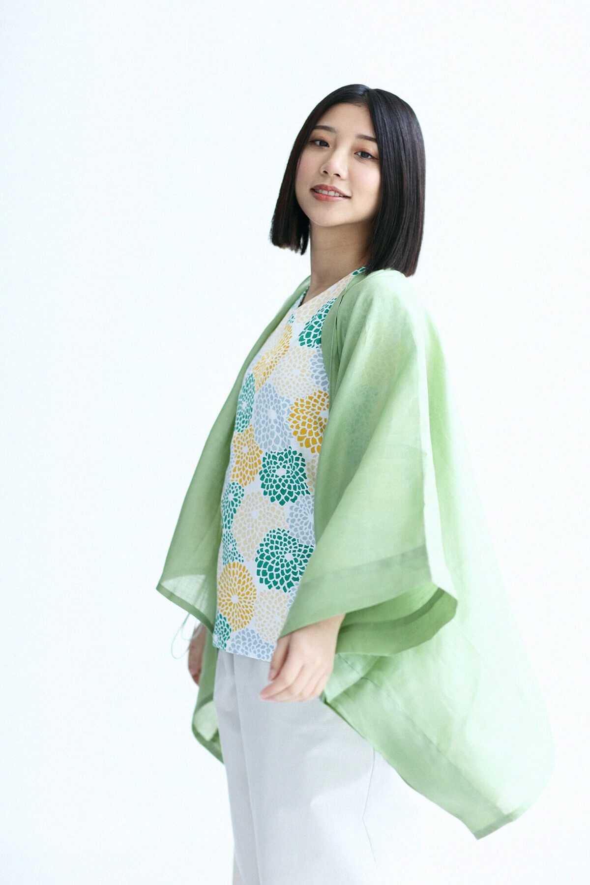 織物産業の街、滋賀県高島市の名品「高島縮(ちぢみ)」。200年以上の伝統をもつこの生地は、表面に凹凸があって肌に密着しにくく、汗を点で吸って面で拡散するため、爽やかな着心地です。
