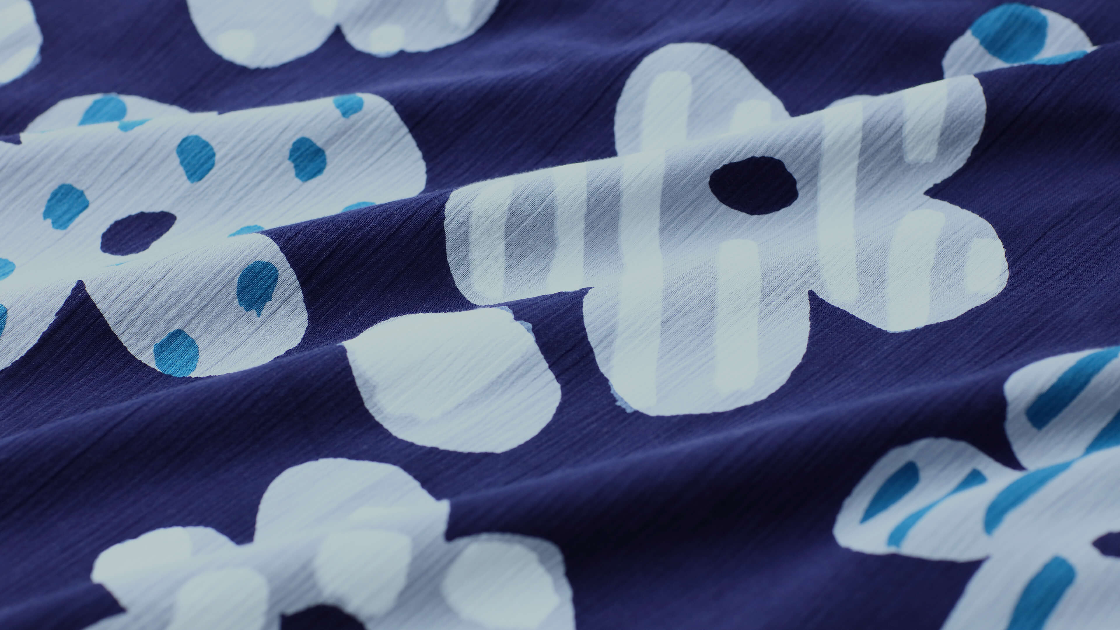サラリとしたシャリ感が特長の高島縮。その秘密は、シボと呼ばれる表面の凹凸にあります。糸の撚りや織りの配列、型押しなどによって作られるシボが極上の肌触りを生み出し、ステテコなどの肌着を中心に広まりました。