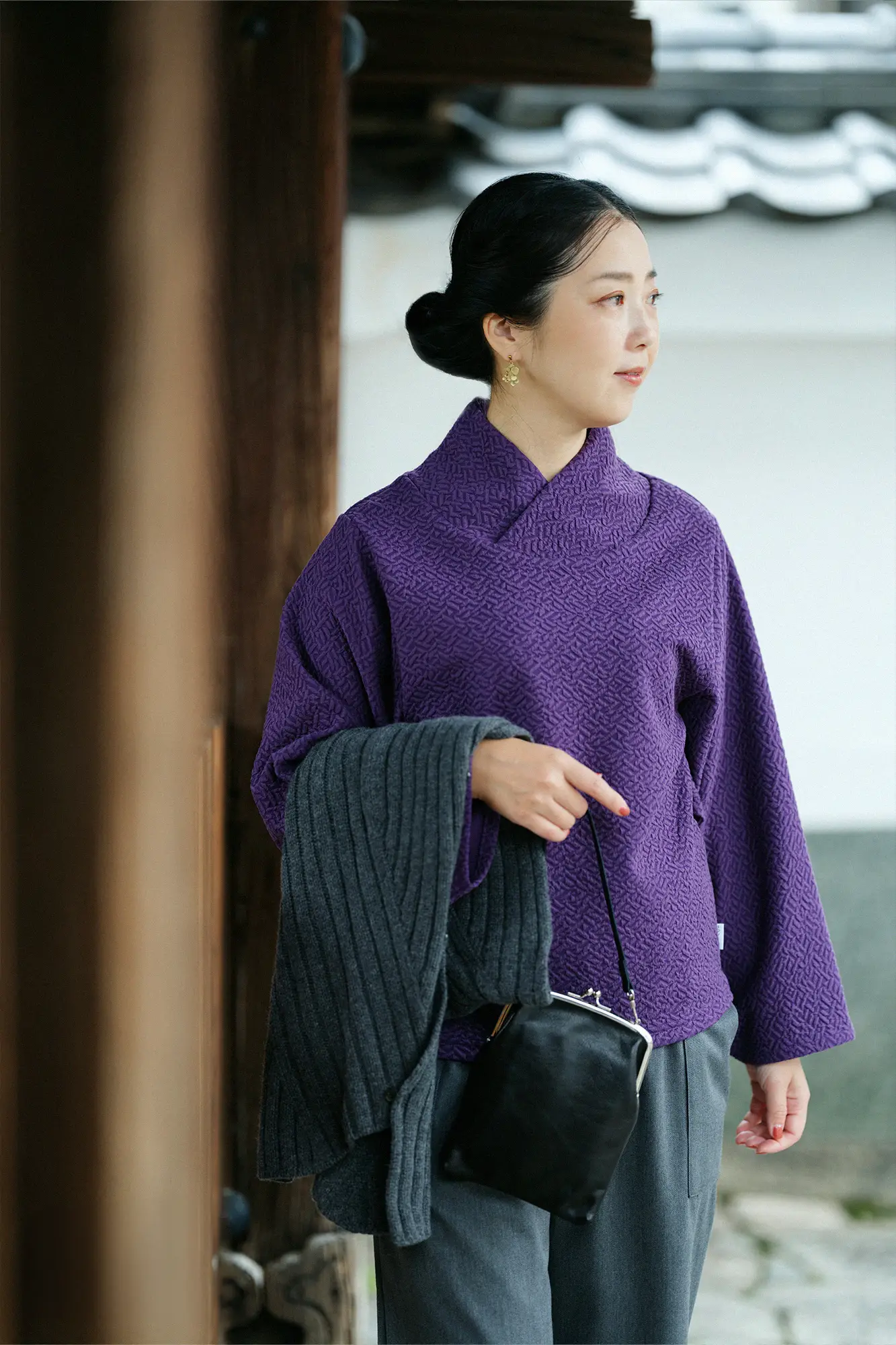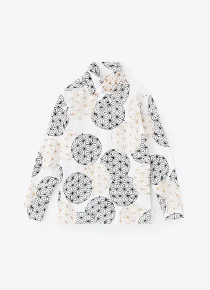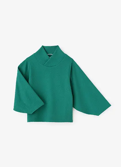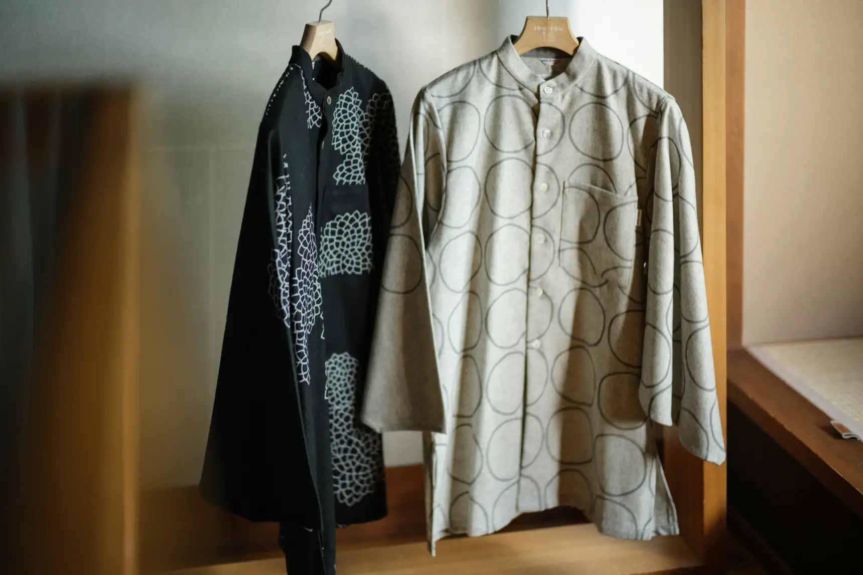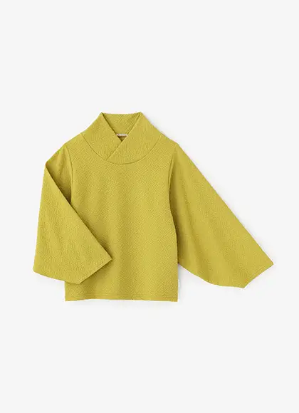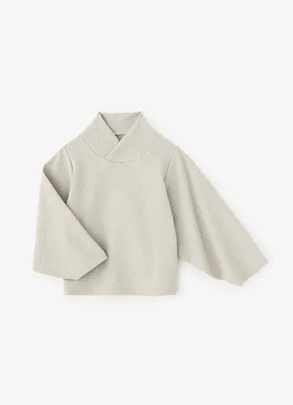 タックが入って立体的な襟のデザインは京都デザイン賞受賞。