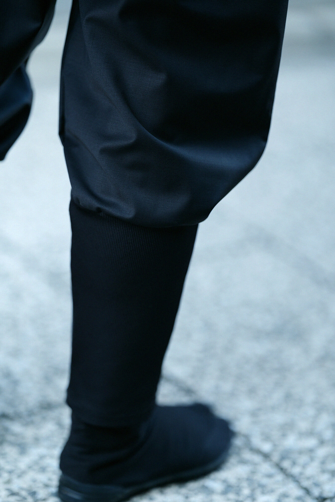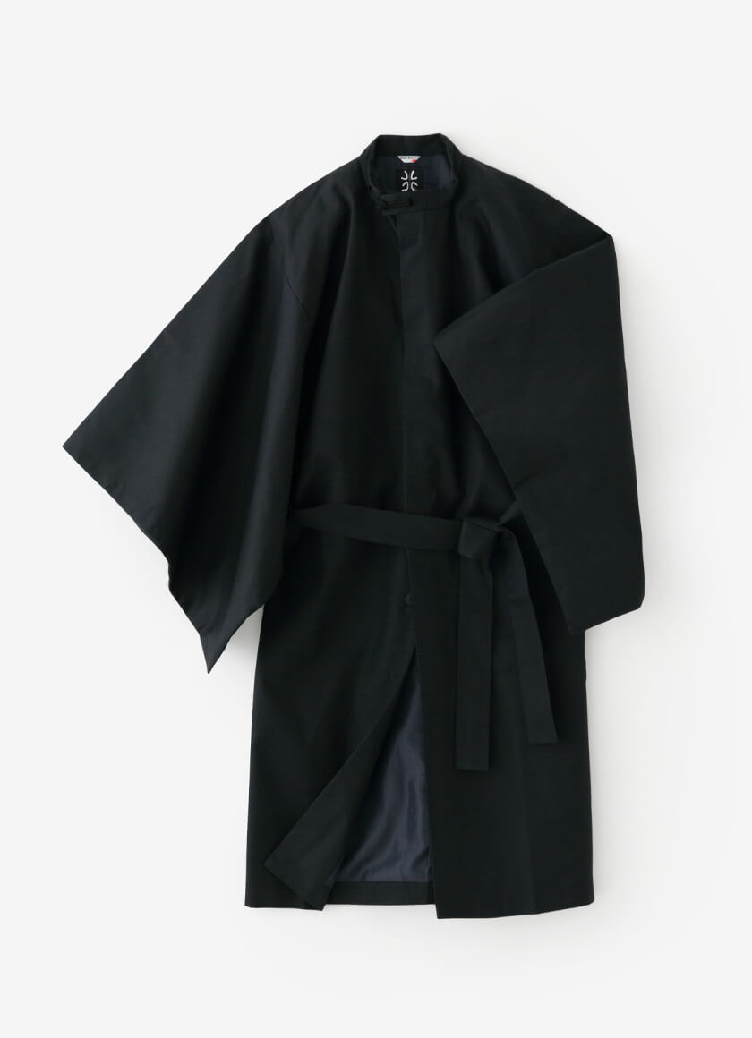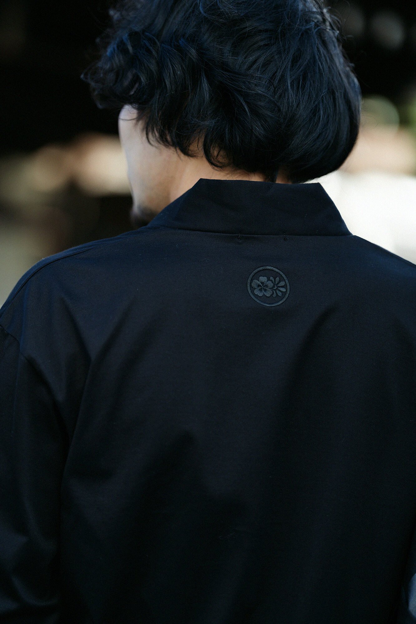 ディテールにもとことんこだわりました。「円領外套」の立衿&紐ボタンと左胸内側の懐紙ポケット。「風靡」の後ろ衿下には、SOU・SOU家紋刺繍を入れました。特別に作成した「行」の文字をデザインしたネームにも、ぜひご注目ください。