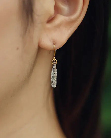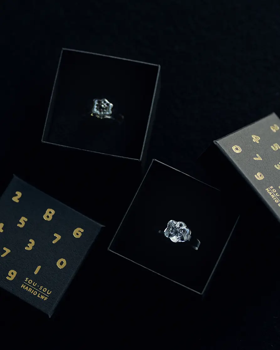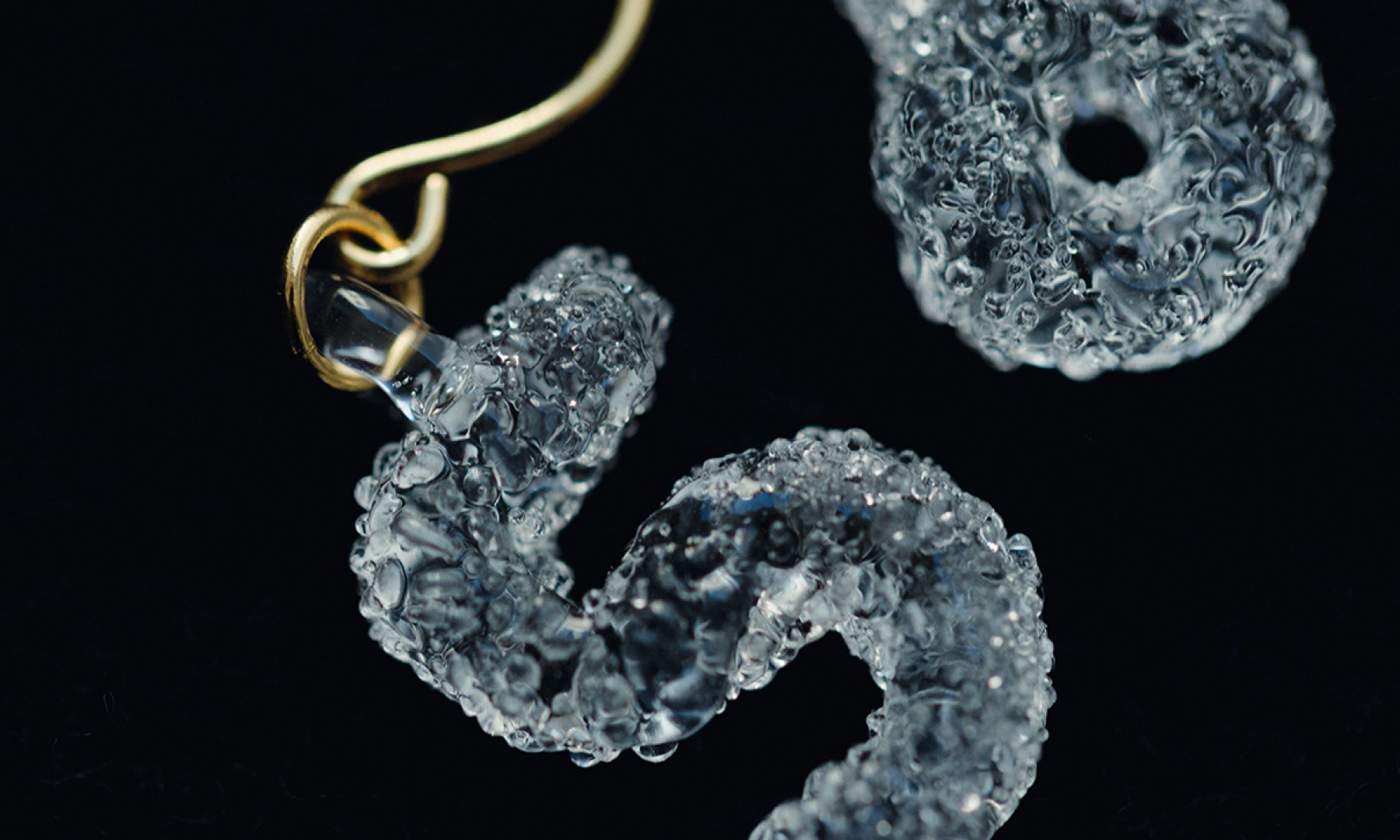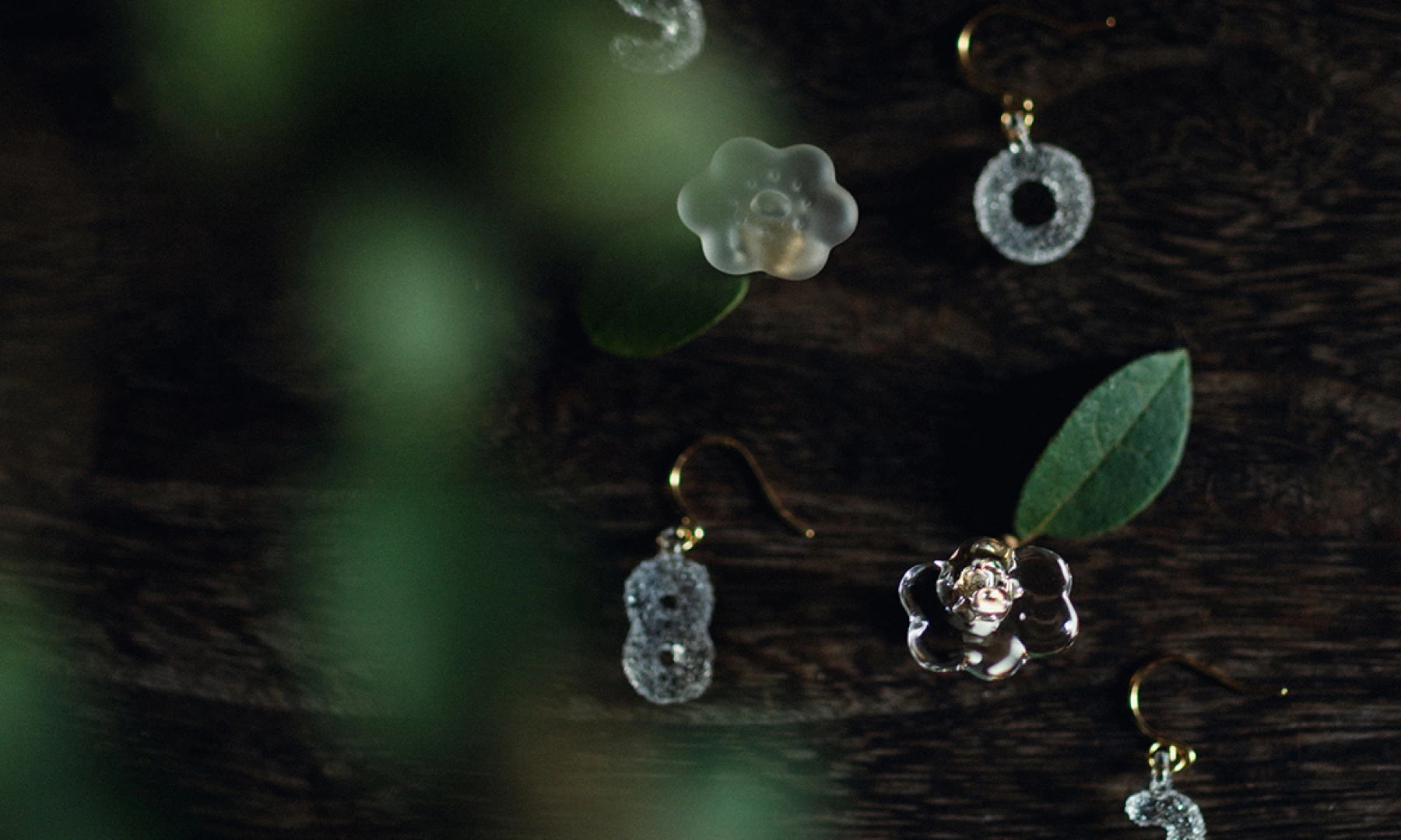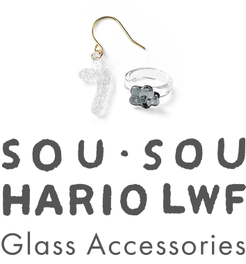 一つ一つ丁寧に、手作業で仕上げられたガラスアクセサリー。ガラスならではの透明感と輝きでSOU・SOUのテキスタイルデザインを繊細で立体的に表現しました。