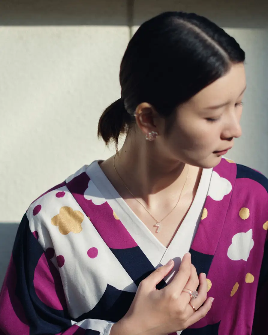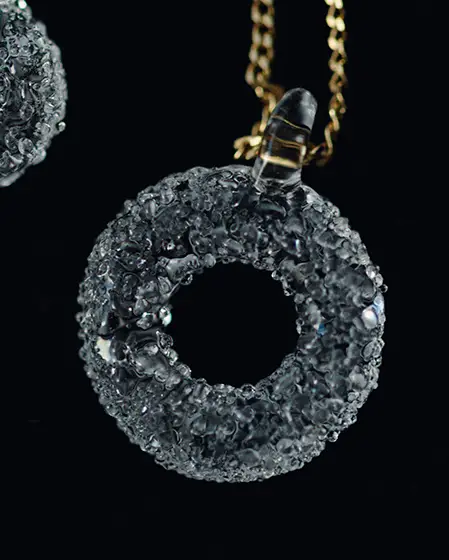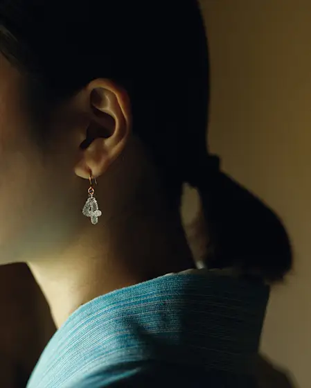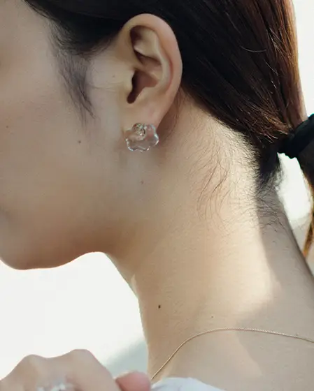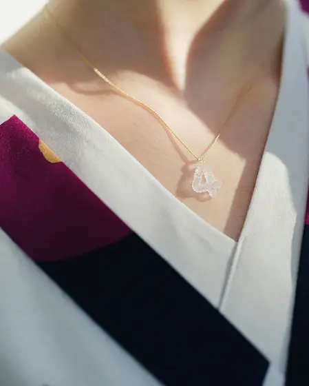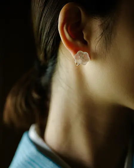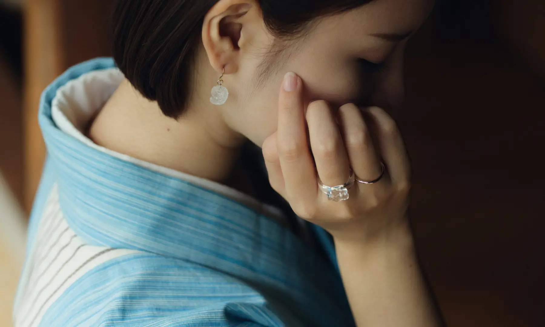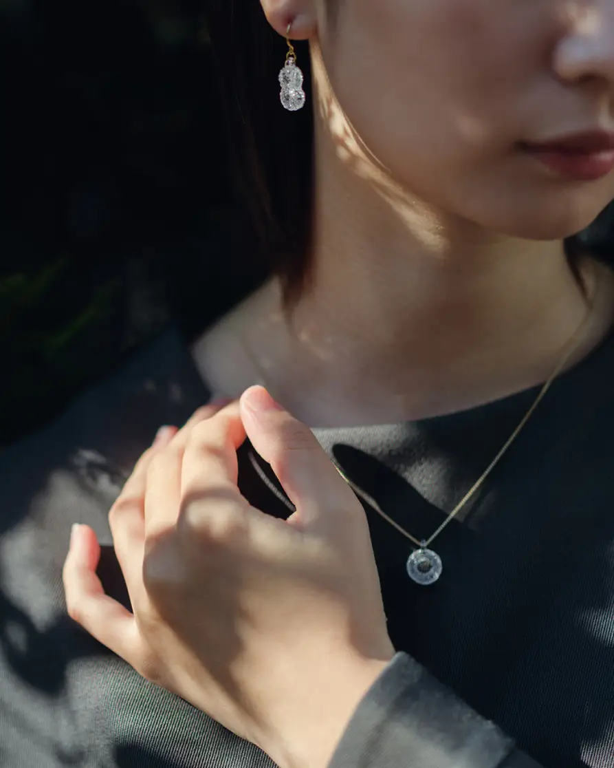 光をとらえて表情を変えるガラスの質感と、手仕事ならではの温もり。和洋装に合う“現代の工芸品”です。