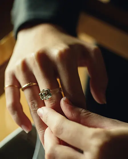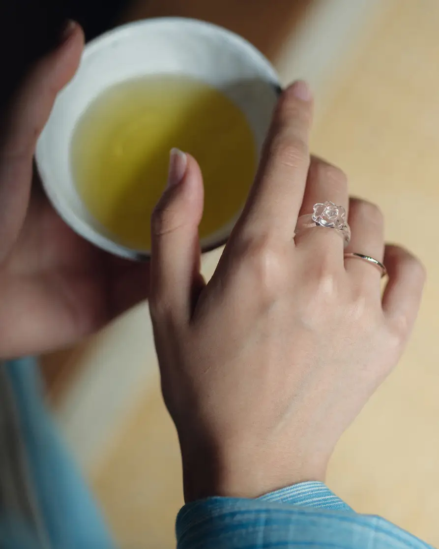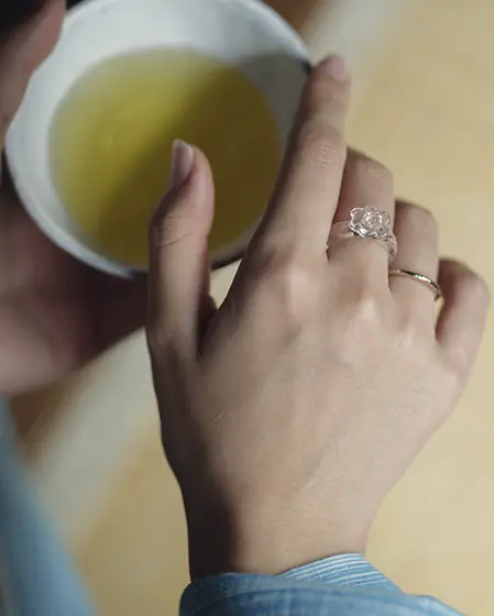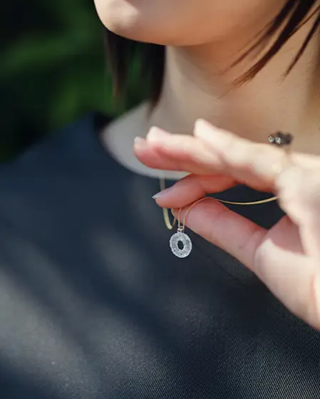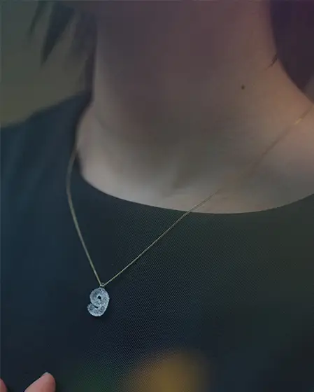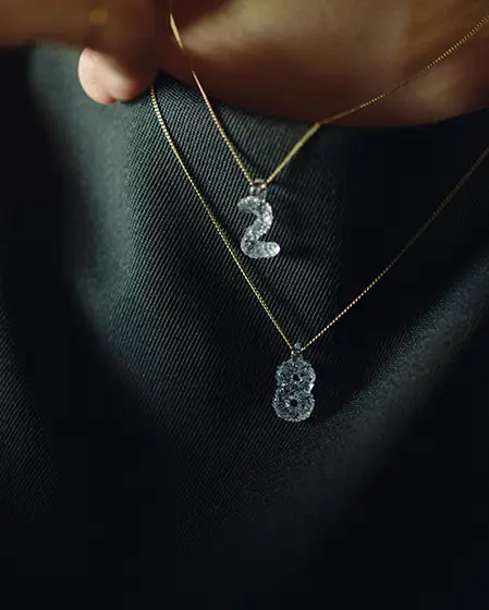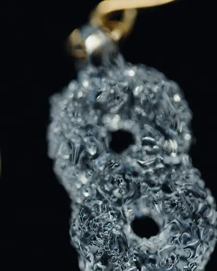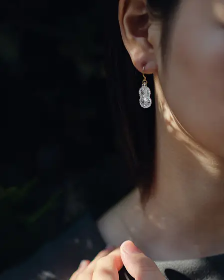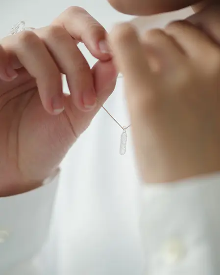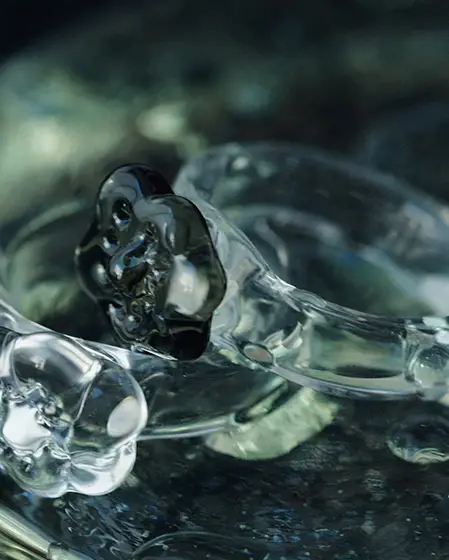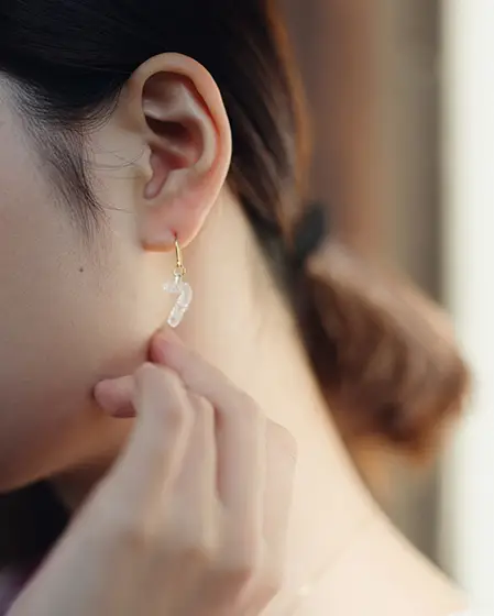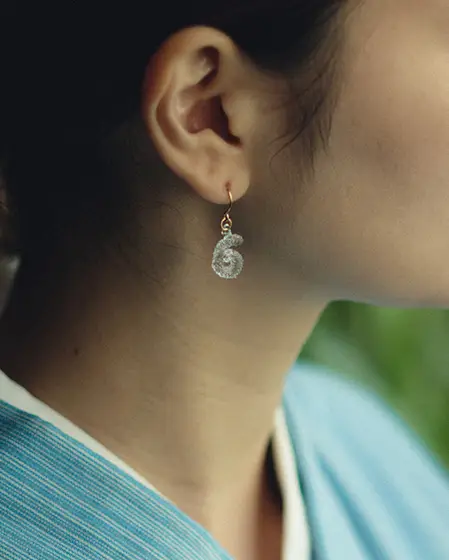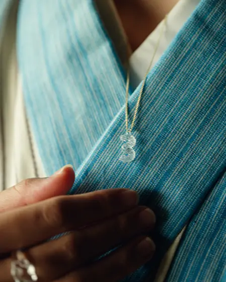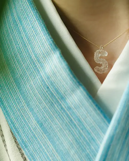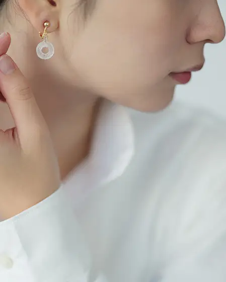 光をとらえて表情を変えるガラスの質感と、手仕事ならではの温もり。和洋装に合う“現代の工芸品”です。