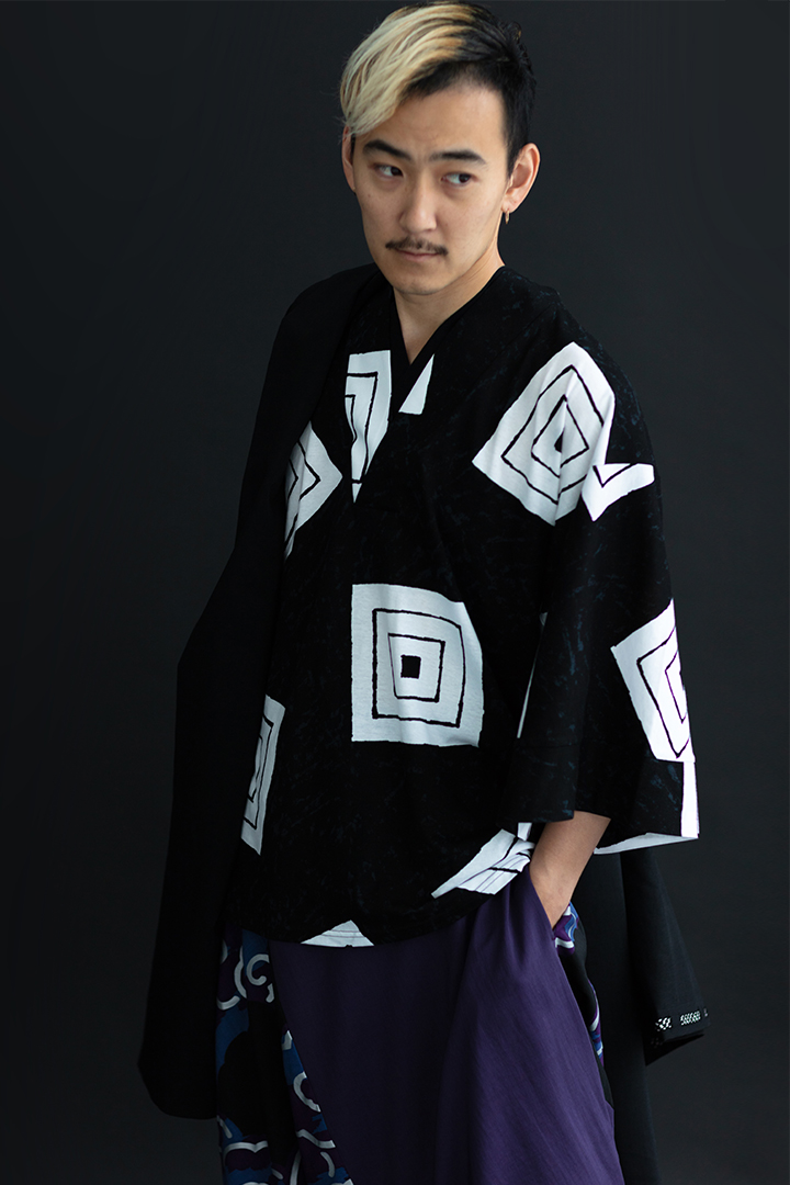 傾衣スタイルのマストアイテム。格式高い重ね衿に見立てた衿元のデザインが特徴的。