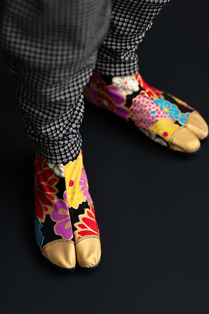 カブキモノの足元を飾る、傾衣セレクトの地下足袋。