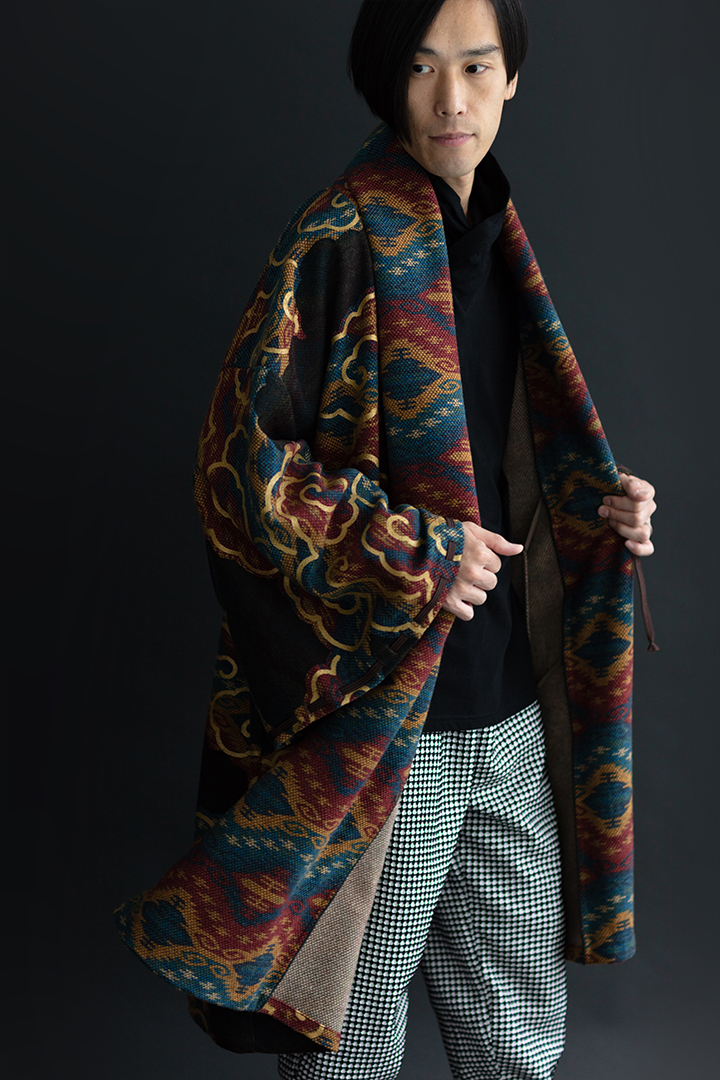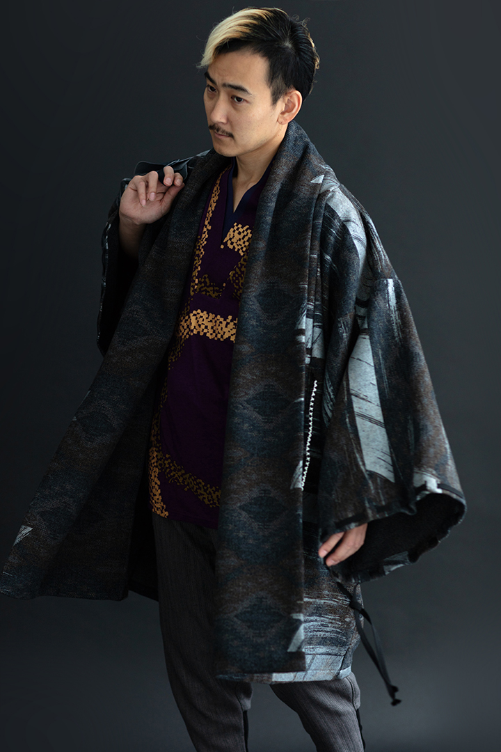 公家装束に用いられた袖括(そでくくり)が特徴。着物の上からも着用できる羽織。