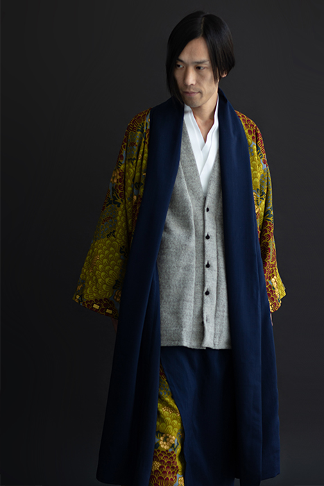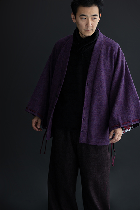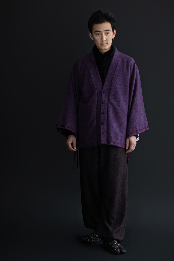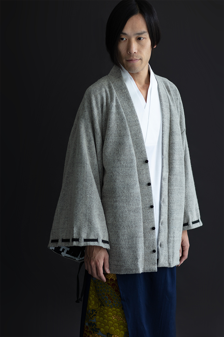 公家装束に用いられた袖括をポイントにしたカーディガン風の羽織。