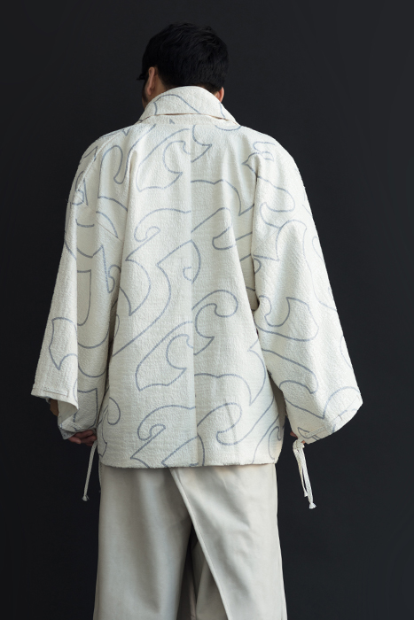 たっぷりとした衿元と特徴的な袖部分がポイントの羽織もの。