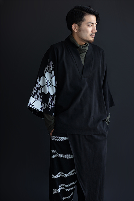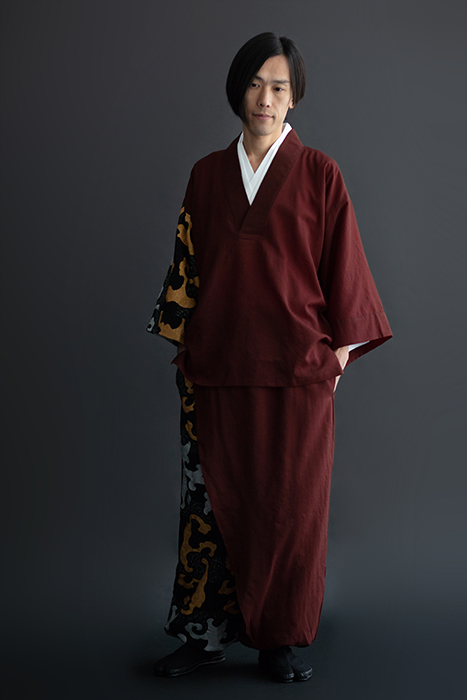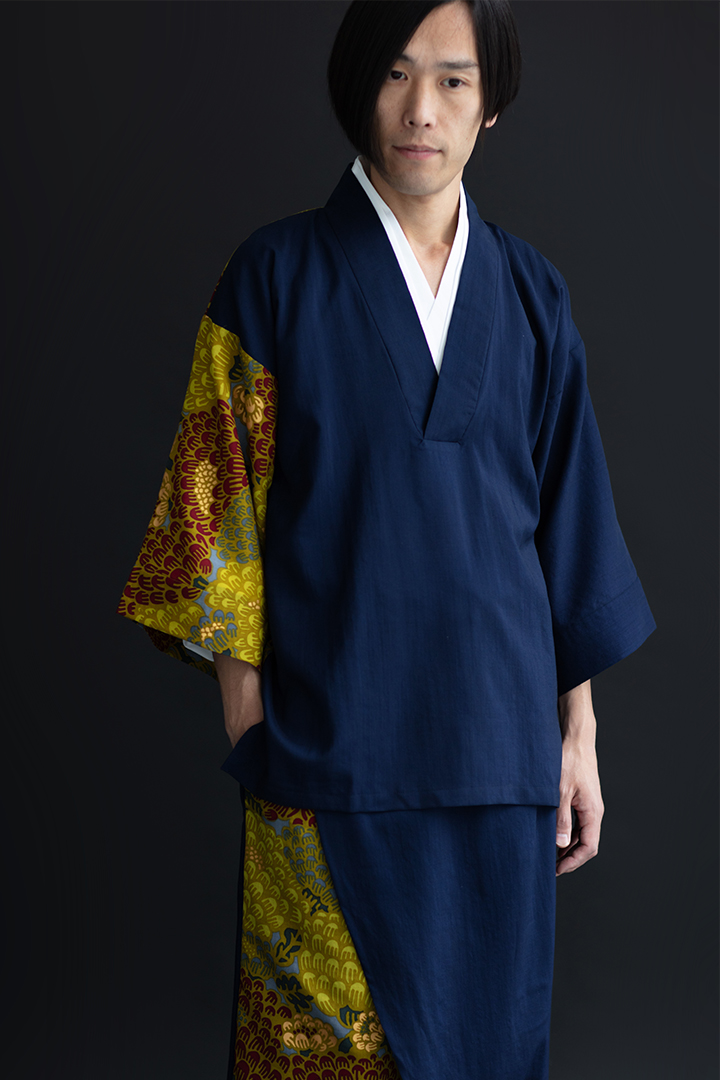 モスリン素材を使用したSOU・SOU流の二部式和装。