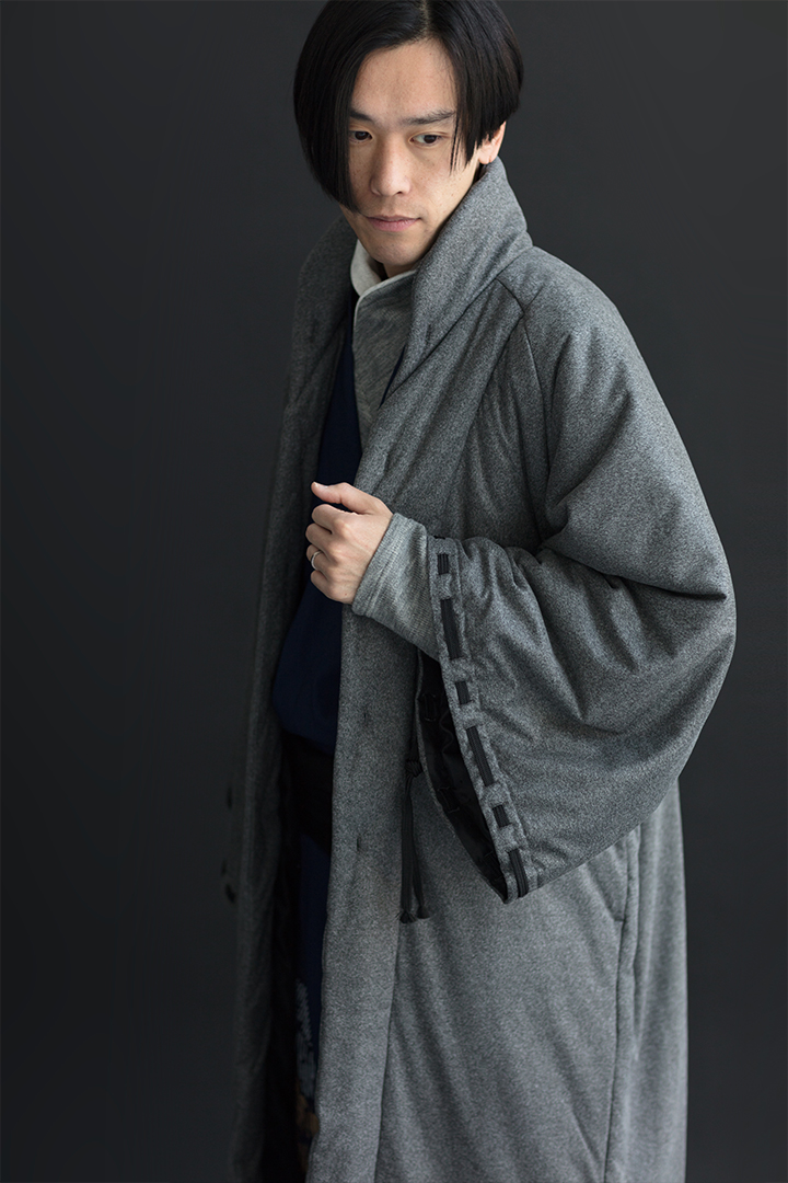 中綿入りのあたたかい羽織。公家装束に用いられた袖括がポイントです。
