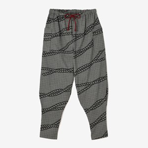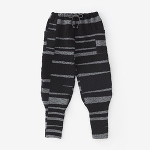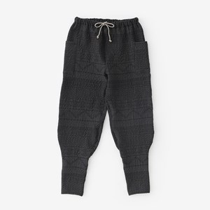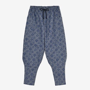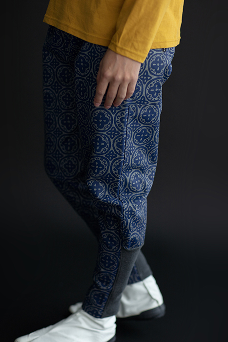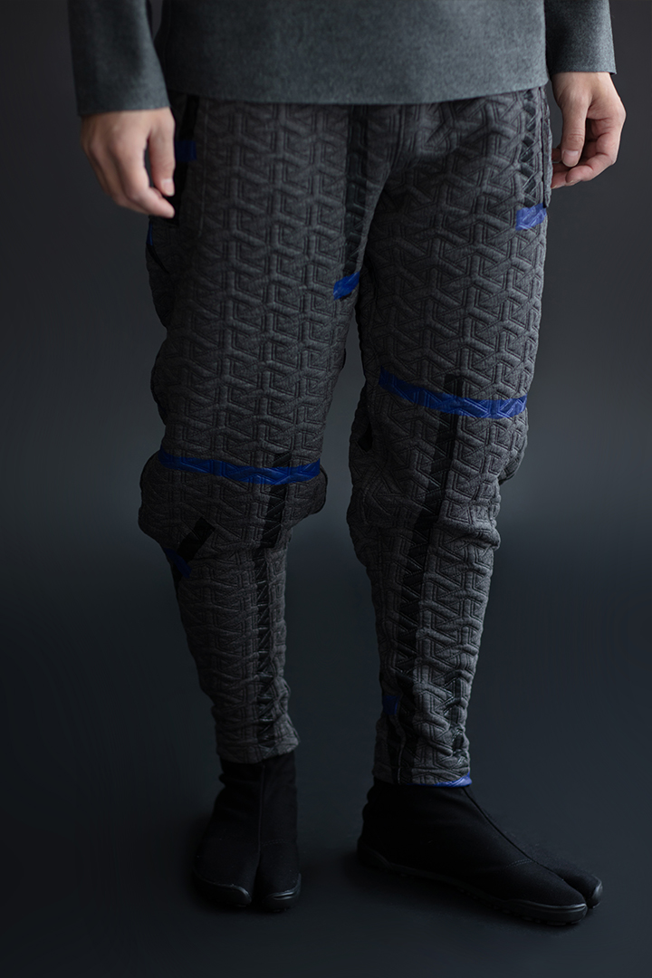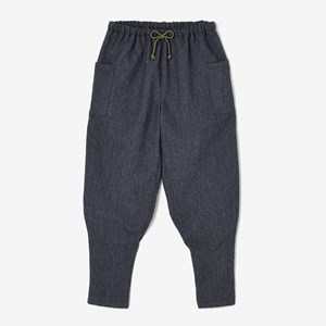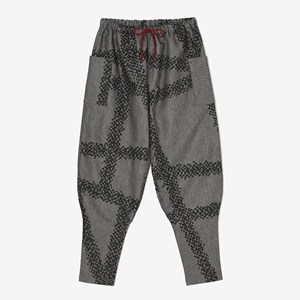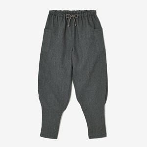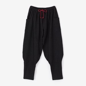細身のシルエットのズボン。ひざ下部分を紐で絞った袴に似たデザイン。