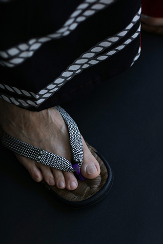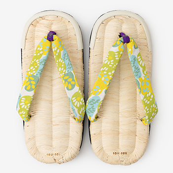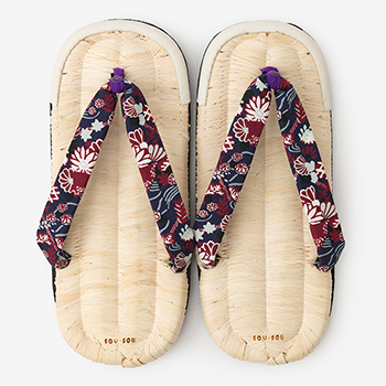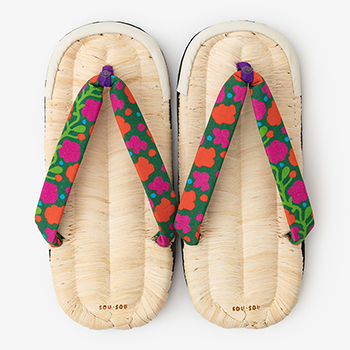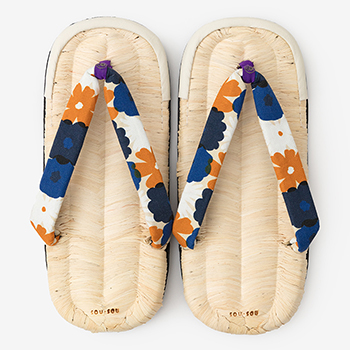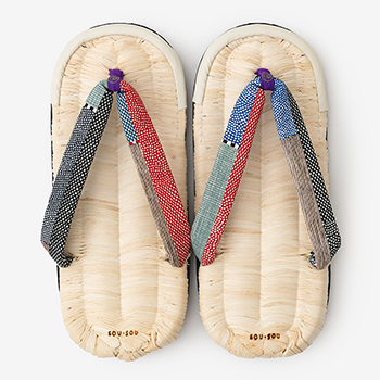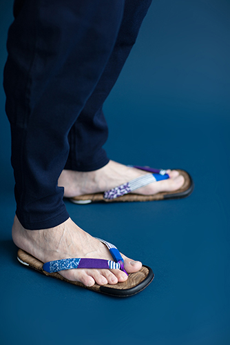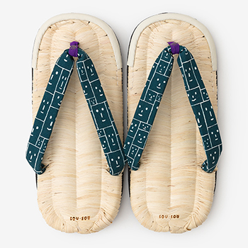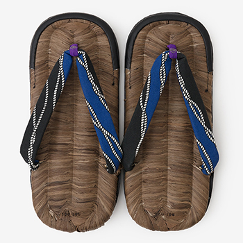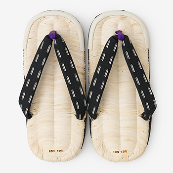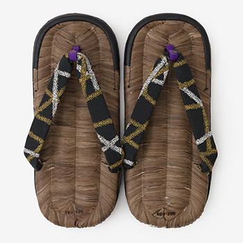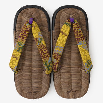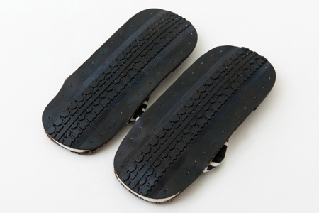 裏に自転車のタイヤが縫い付けられた草履。草履の一大産地である奈良県御所市で生産。