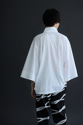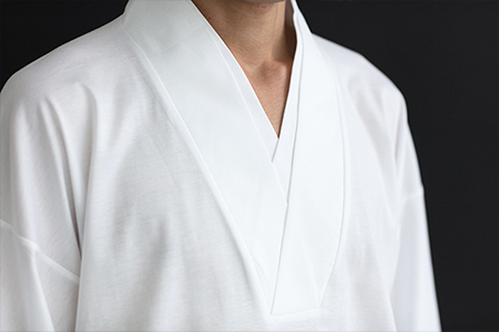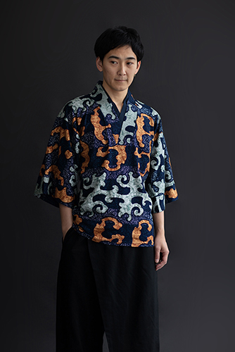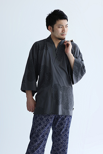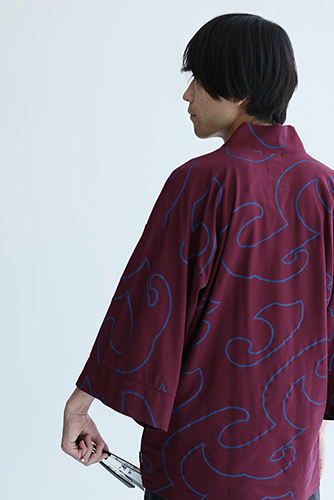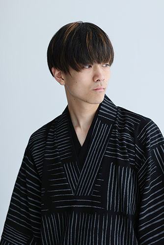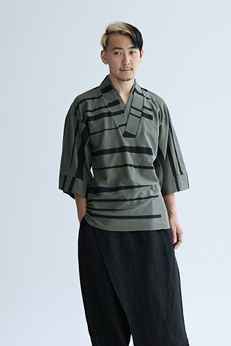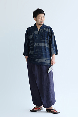 重ね衿が特徴のSOU・SOU流二部式和装。軽い肌ざわりの綿生地を使用。