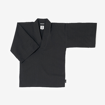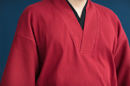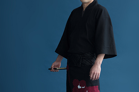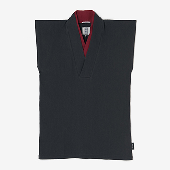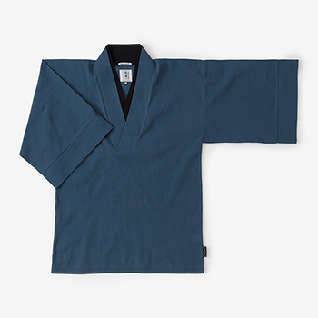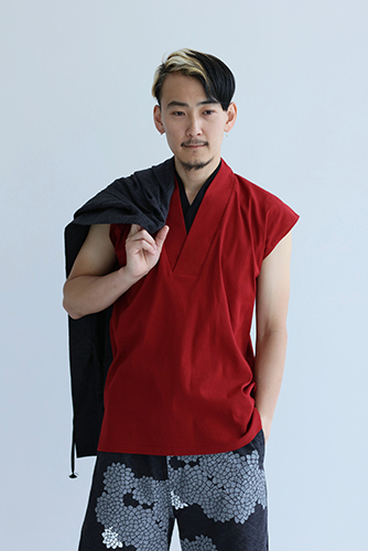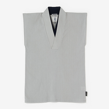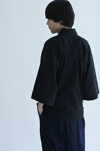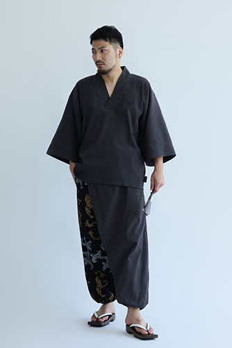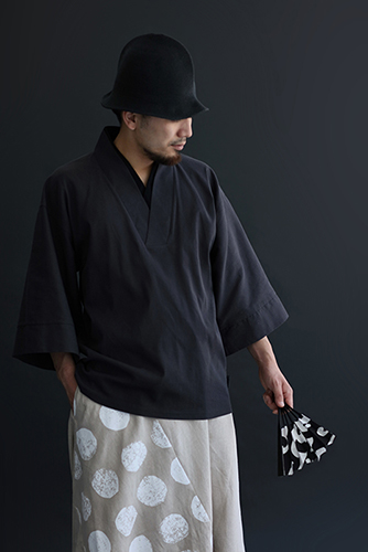 重ね衿が特徴のSOU・SOU流二部式和装。爽快な着心地の高島縮を使用。
